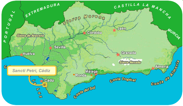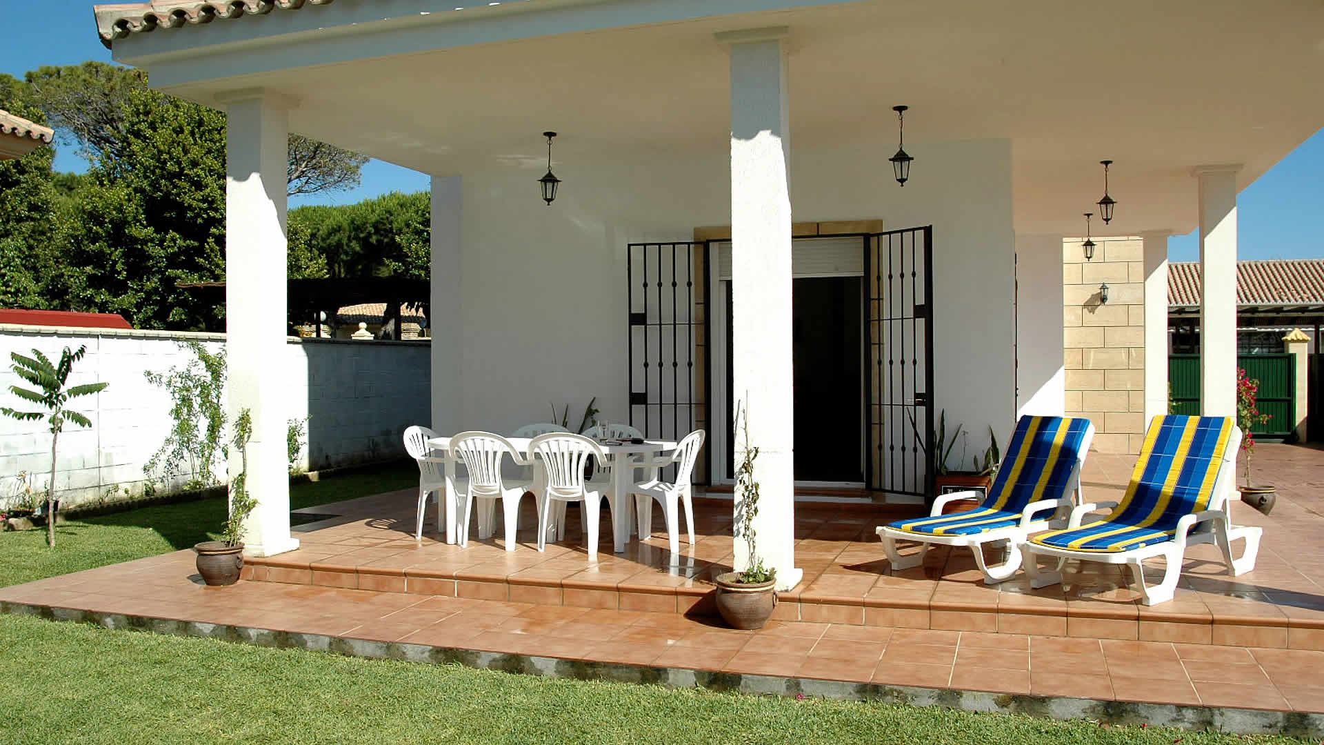 Por favor, permÃtame ilustrarle sobre la interesante historia del lugar: Sancti Petri es la pequeña isla que usted podrá ver desde la Playa de la Barrosa. ¿ Escuchó alguna vez hablar del Templo de Hércules? Fue el templo más famoso en todo el Mediterráneo occidental, remontándose a los tiempos de la guerra de Troya. Sobre sus ruinas fue construido el Castillo de Sancti Petri en el siglo XIII. Justo frente a la isla se encuentra el antiguo pueblo marinero de Sancti Petri, usado ahora como punto de partida desde donde hacer excursiones en barco para de observar la isla de cerca. Actualmente, el acceso a la isla no está permitido. La casa se encuentra situada a pocos kilómetros al sur del puerto, en una tranquila calle del enclave turÃstico llamado Novo Sancti Petri, donde encontrará gran número de tiendas, restaurantes y bares de tapas a escasos pasos de su puerta. La casa, totalmente independiente tiene piscina privada (8 X 4 m), zona de césped con tumbonas y barbacoa. Junto a la sala de estar hay una terraza con sombra y muebles de jardÃn. Un lugar ideal para comidas al aire libre.El lugar forma parte del municipio de Chiclana de la Frontera, un animado pueblo con puerto de mar a siete kilómetros de distancia y en el que encontrará varias bodegas donde se almacenan los famosos vinos "Moscatel". En menos de una hora tendrá la posibilidad de visitar ciudades tan interesantes como Cádiz, el Puerto de Santa MarÃa o Jerez de la Frontera.