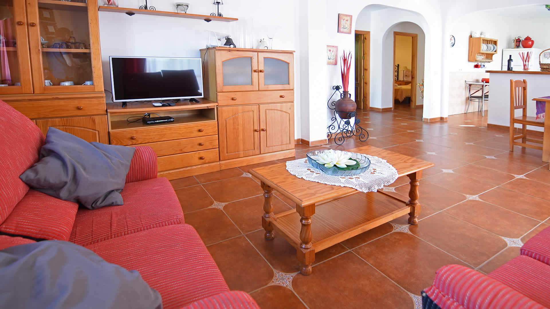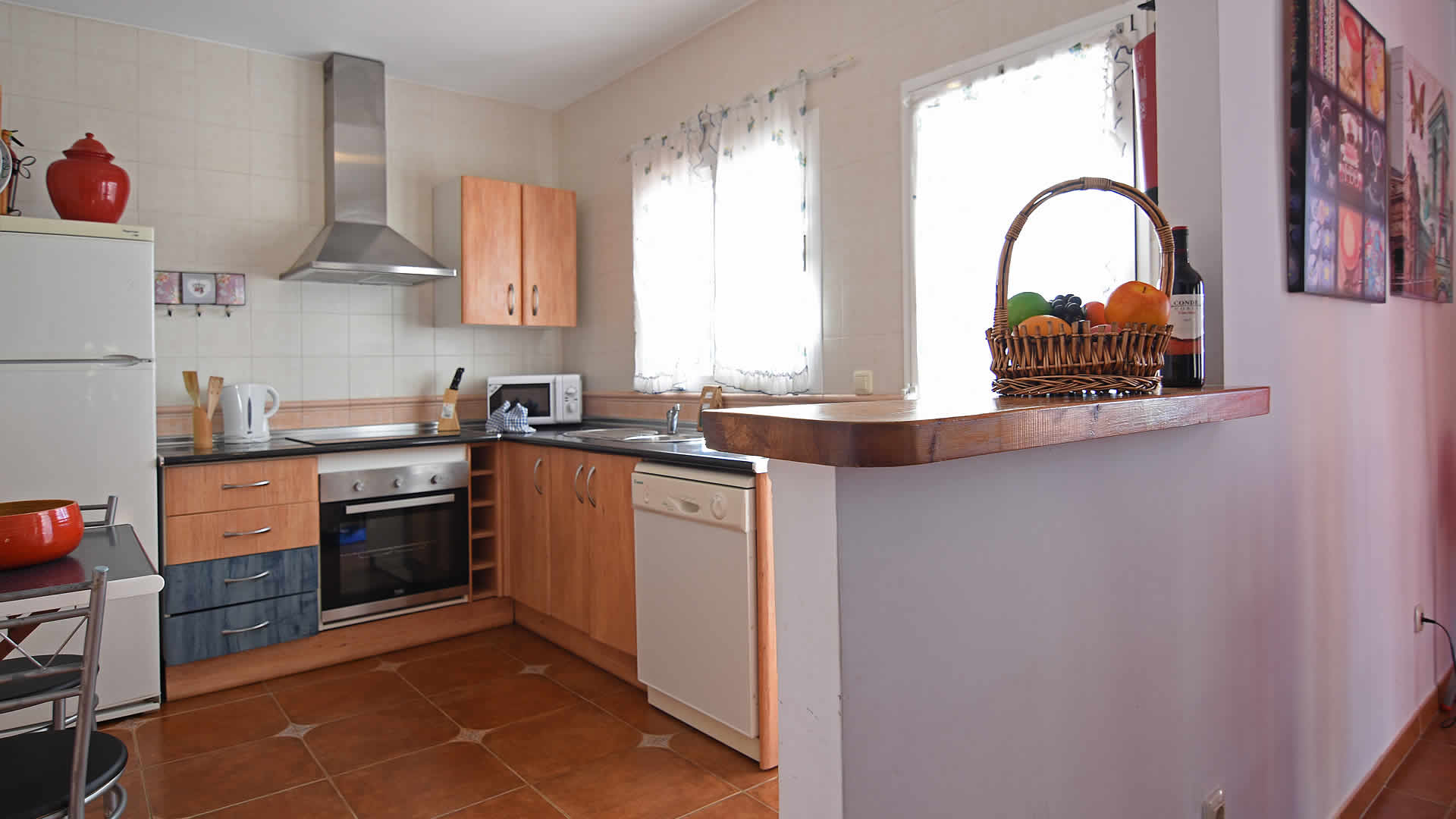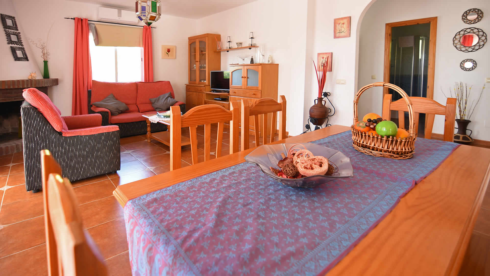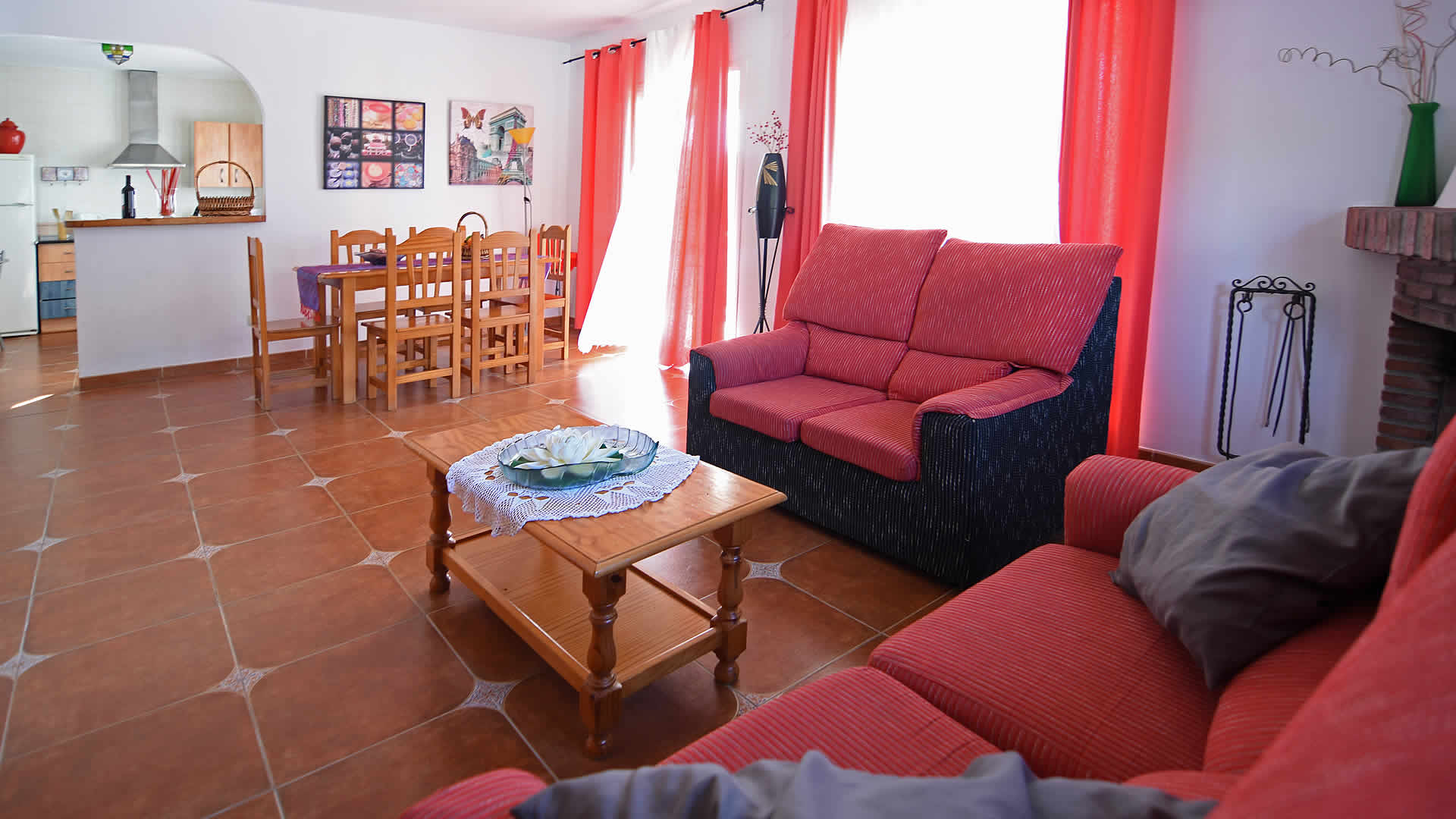 La casa tiene todas las estancias en una sola planta. El interior tiene un estilo rústico con losas tradicionales en el suelo. Los muebles son confortables y sencillos. El salón dispone de chimenea, mesa comedor, 1 sofá, 2 sillones y TV satélite. La cocina está equipada con vitro-cerámica, microondas, frigorÃfico/congelador, lavavajillas y lavadora. Dispone de tres dormitorios y dos baños.Notas:- Dispone de conexión a Internet WiFi (gratuito).- Dispone de aire acondicionado en el salón, aunque el aire frÃo debe notarse también en los dormitorios (incluido en el precio).