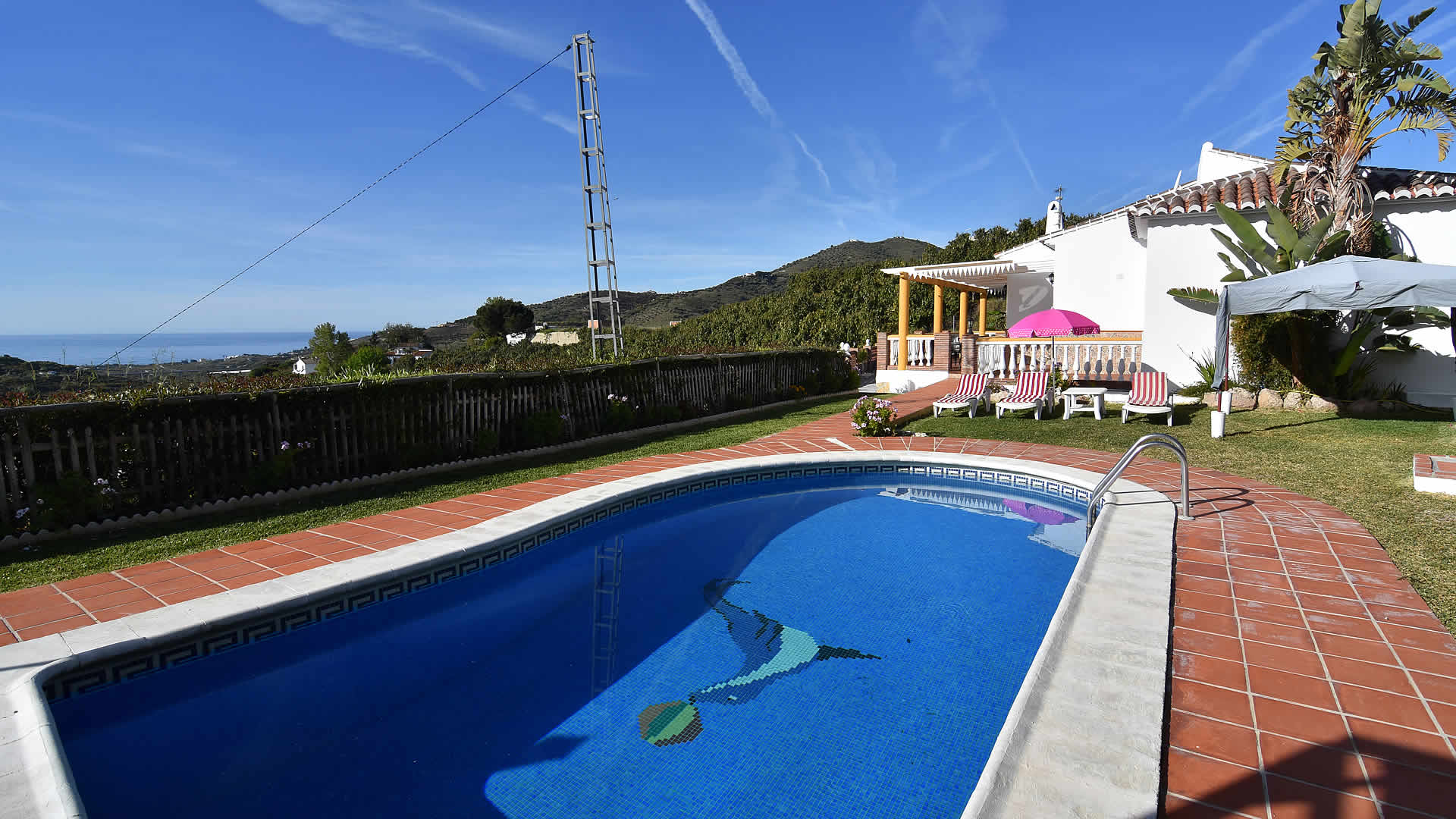 Acogedora casa de campo, a 4 km de Frigiliana, ubicada sobre una colina. Junto a la casa hay una sombreada terraza, que ofrece limpias vistas al paisaje. La piscina privada (7,70 m x 6,80 m) está rodeada de césped, ideal para familias con niños. Hay barbacoa y mesa de comedor para las comidas al aire libre. La casa disfruta de un emplazamiento reposado en el campo con cómodo acceso, aunque parte del camino transcurre por un carril de campo en buenas condiciones. Si decide salir un dÃa de excursión, puede visitar los tradicionales pueblos de los alrededores o la Alhambra de Granada. Para salir por la noche, Nerja ofrece una amplia selección de restaurantes, bares y discotecas.