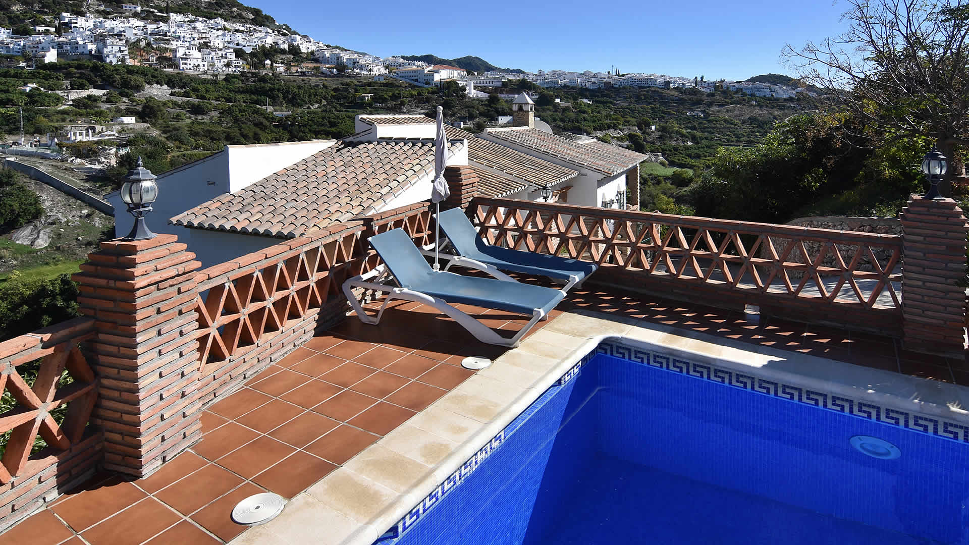 The ease of booking with Casitas-Select was perfect. The pictures the websites this villa is advertised on don't do it justice. The owner is unobtrusive but very helpful. (He took us to the nearest supermarket because we arrived on a Sunday) He loves his plants and his villa and this shows. It is immaculate and extremely well equipped and feels like a holiday home not a rental. The pool has filters which automatically come on every evening. We found the one level great and the open plan kitchen/living room really practical. Outside the views are to die for. We sat listening to crickets goat bells and an amusing ass/mule who lives on the hillside and is quite vocal. The dogs barking are a bit distracting but you would hear these anywhere in Frigiliana. You can walk to the village on foot-steep in places but doable. Loved it here are no downsides except the access road which is in bad condition and steep in places. You will need more than a Fiat 500 for those hills!