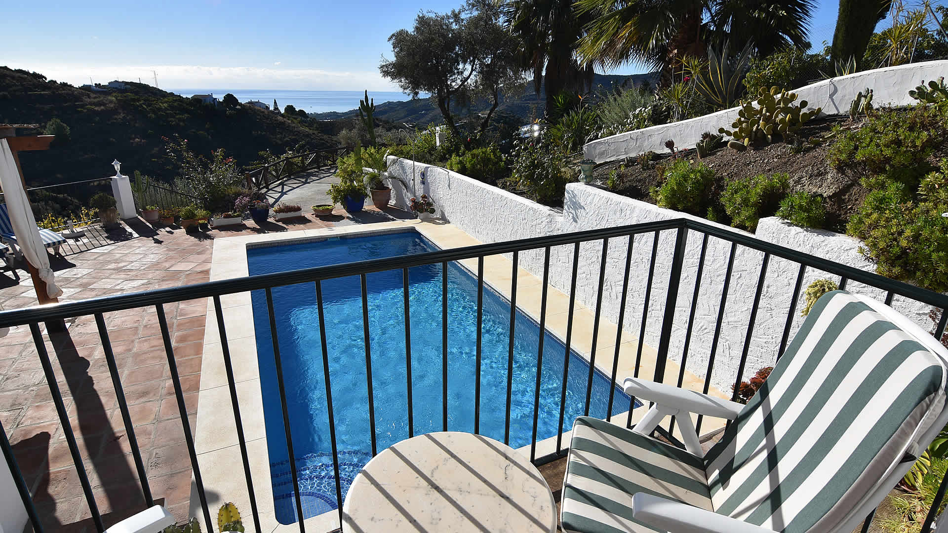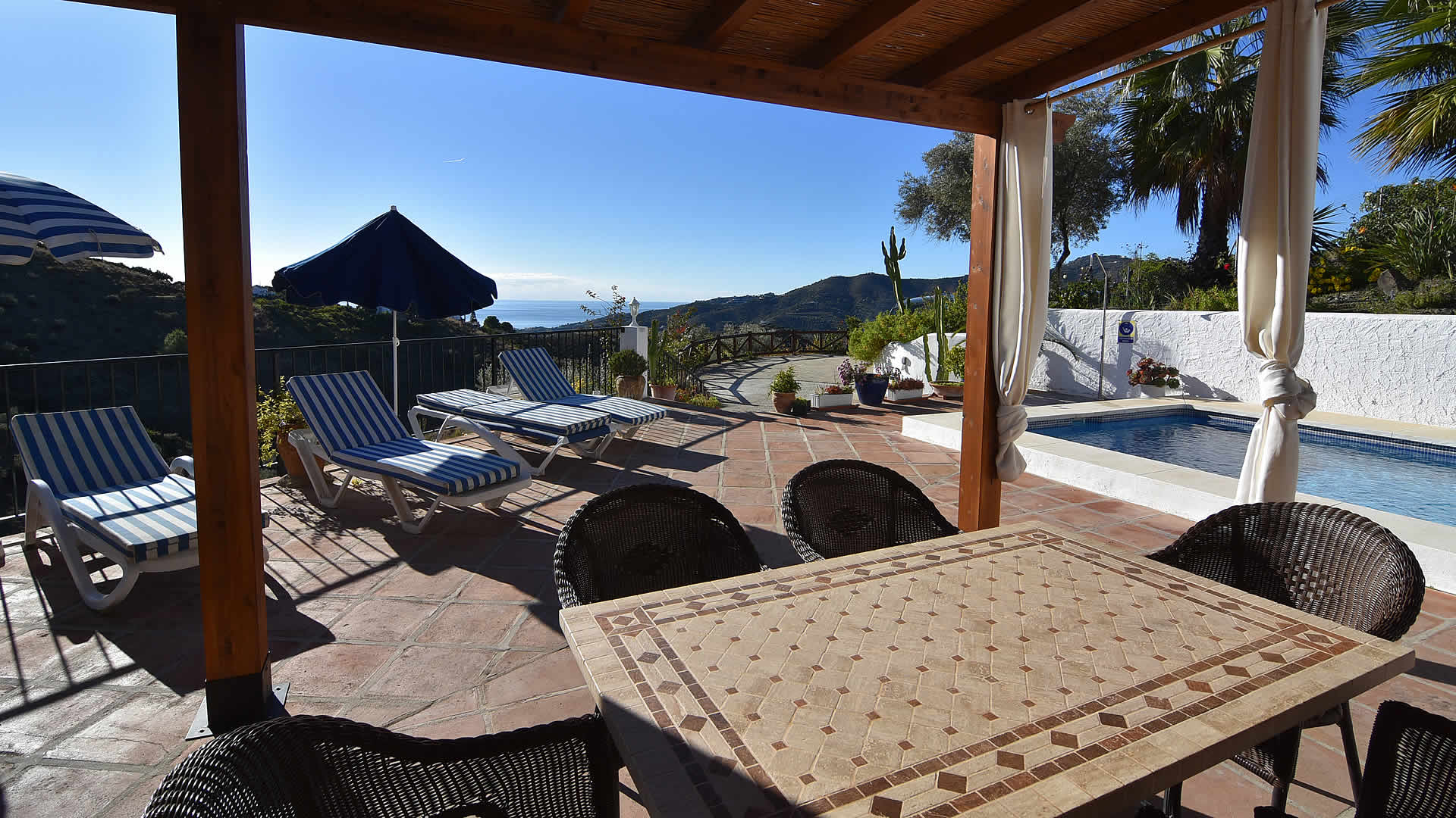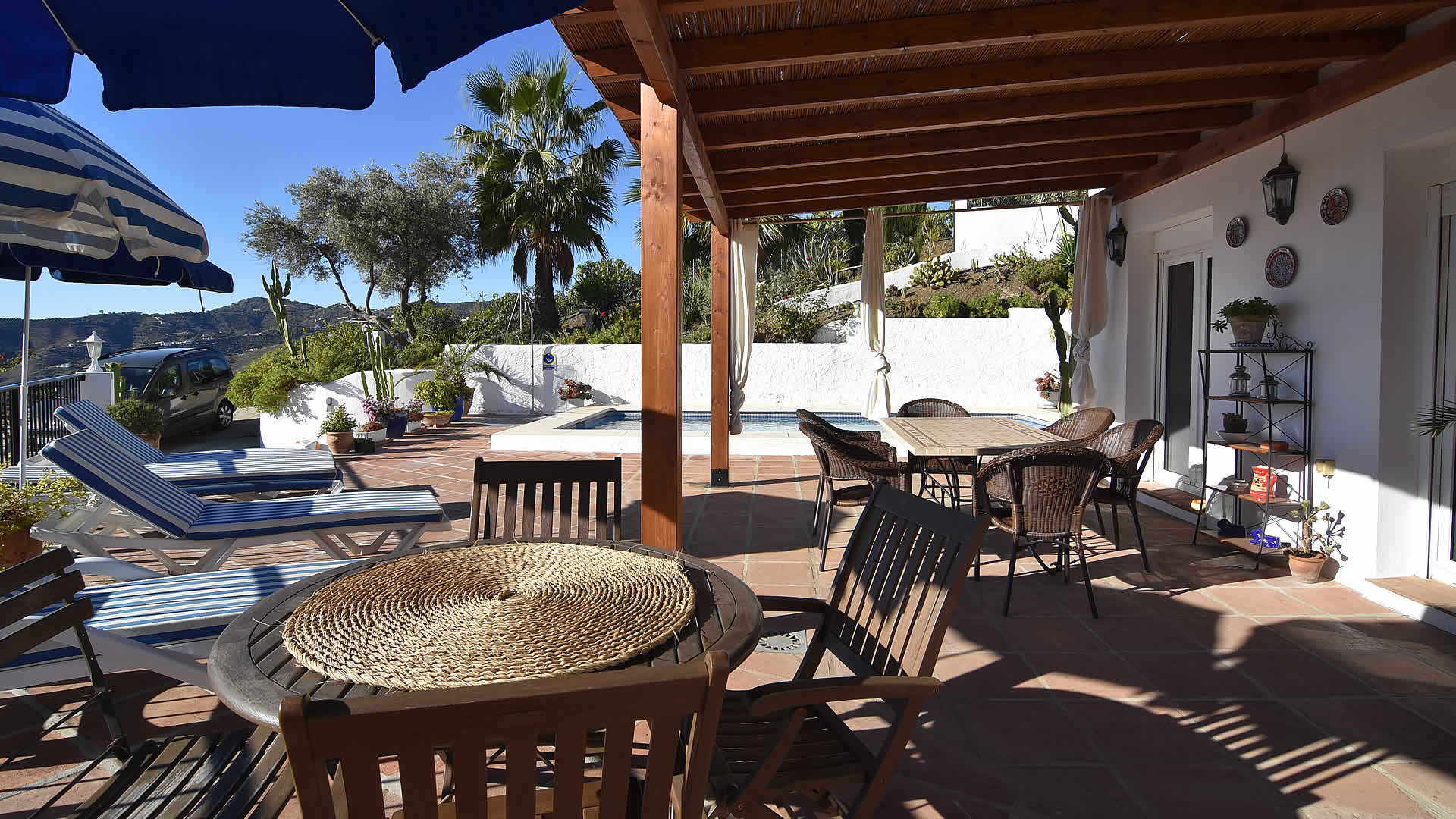 La villa ofrece buena privacidad y esta situado en un sitio hermoso rodeado por olivos y almendros. La amplia terraza delante la casa está orientada al sur y dispone de una atractiva piscina privada (8m x 3m), mobiliario de jardÃn, hamacas y barbacoa. Se disfruta de una magnÃficas vistas sobre el campo alrededor con el Mediterraneo al fondo. En el pueblo de Frigiliana (3,5 kms) encontrará tiendas, bares y restaurantes mientras la playas de Nerja están a unos 10 kms. Por la zona se hace senderismos con varios caminos que se pueden acceder directamente desde la casa.