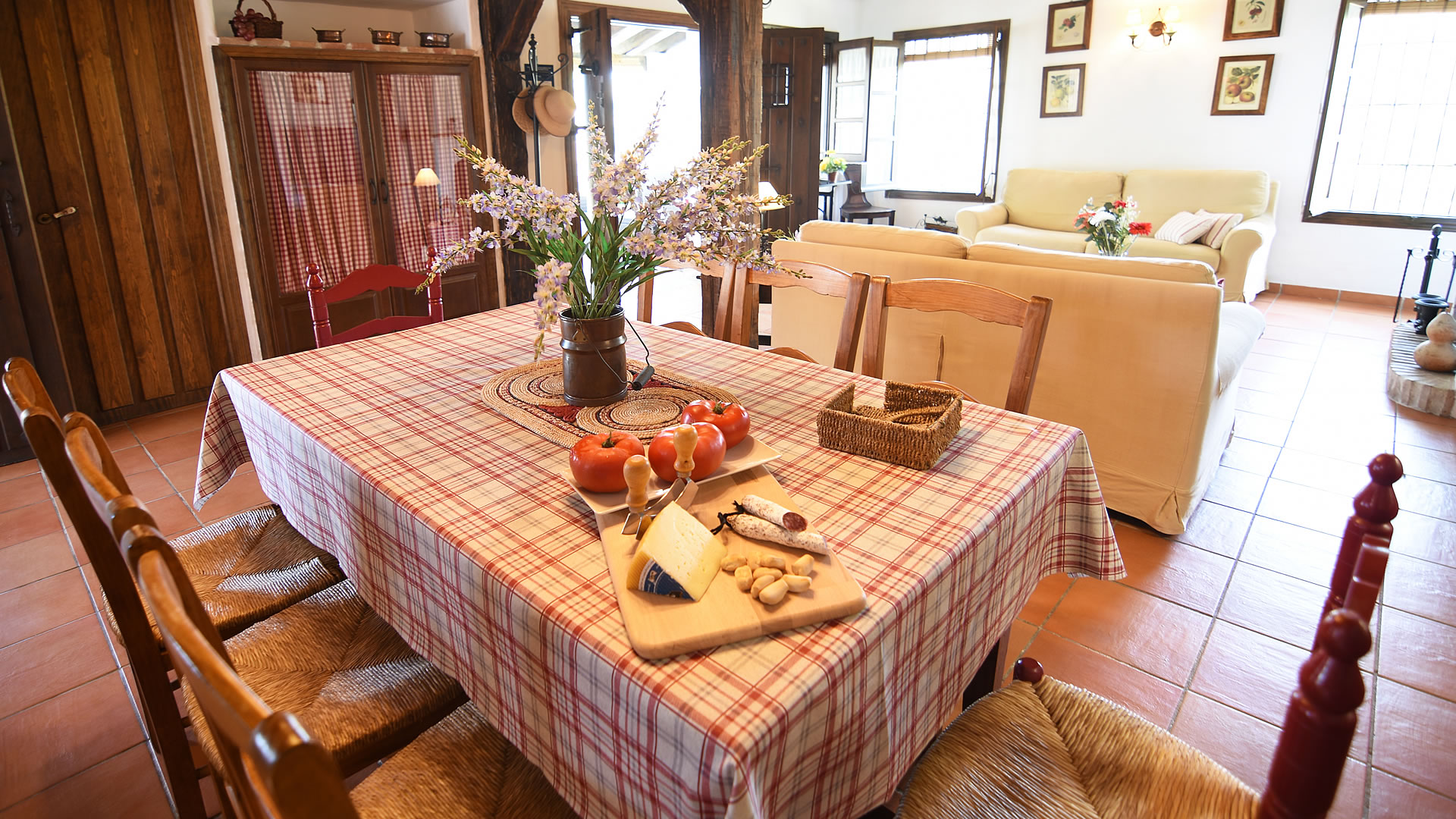 Con tan solo entrar en la residencia, se sentirá como en casa. El propietario ha decorado el alojamiento con un gusto excelente, al tÃpico estilo rústico español, empleando azulejos de la zona y vigas de madera a lo largo de sus techos. La puerta principal nos conduce a un espacioso salón-comedor. En el área del salón encontramos una estufa de leña, dos sofás de tres plazas uno frente al otro, televisión plana con conexión vÃa satélite y equipo de música. La zona de comedor está convenientemente situada cerca de la cocina y ofrece un acogedor rincón para seis personas. La cocina, aunque en estilo rústico, es moderna y está completamente equipada con vitrocerámica, horno, microondas, frigorÃfico combi, lavadora y lavaplatos. Hay tres dormitorios (Dos dobles y uno triple con camas individuales), cuarto de baño completo y baño con ducha. Hay un aparato de aire acondicionado (frÃo / calor) en la sala de estar y otro en el rellano que acondiciona los 3 dormitorios si se dejan las puertas abiertas.Notas:- Los precios son válidos para una ocupación de 6 personas. Se aplica un suplemento de 15 ⬠por noche para la 7ª persona. - Dispone de conexión a Internet WiFi (gratuito).