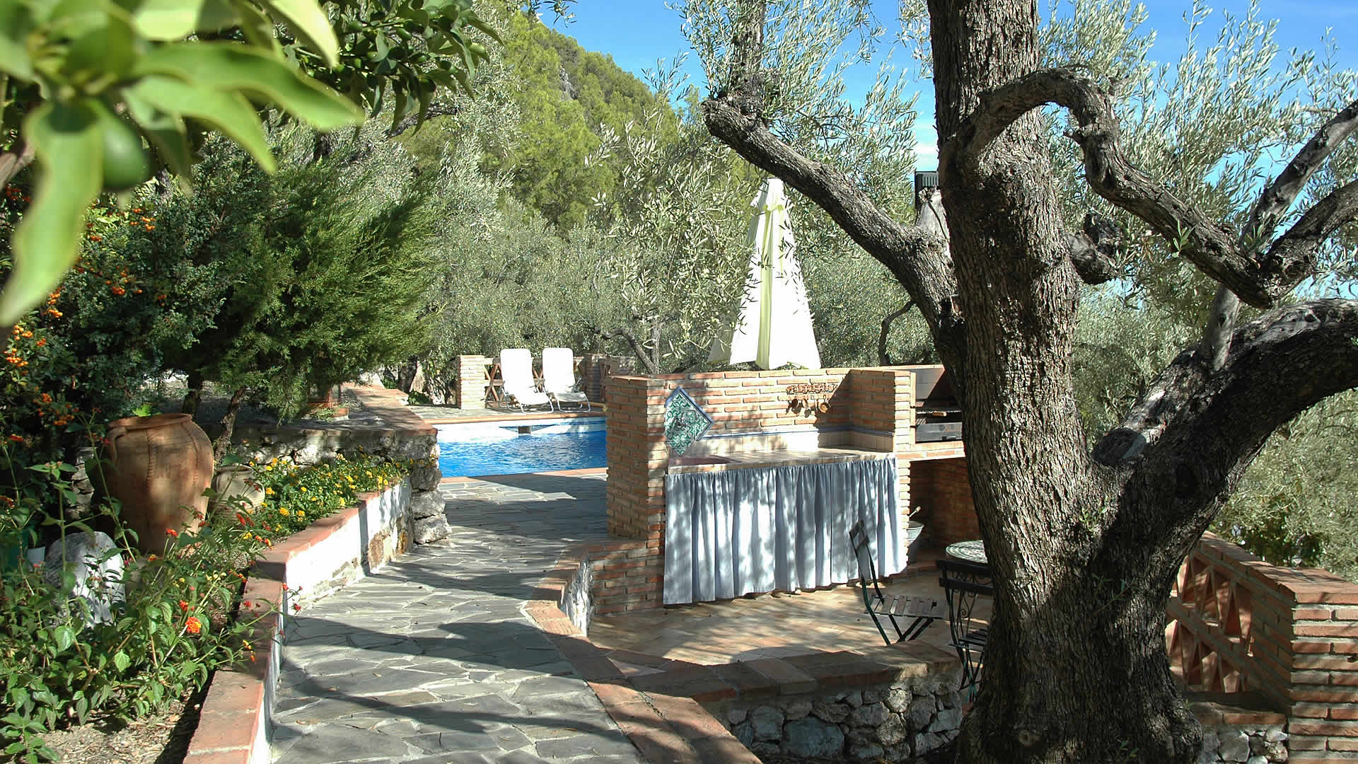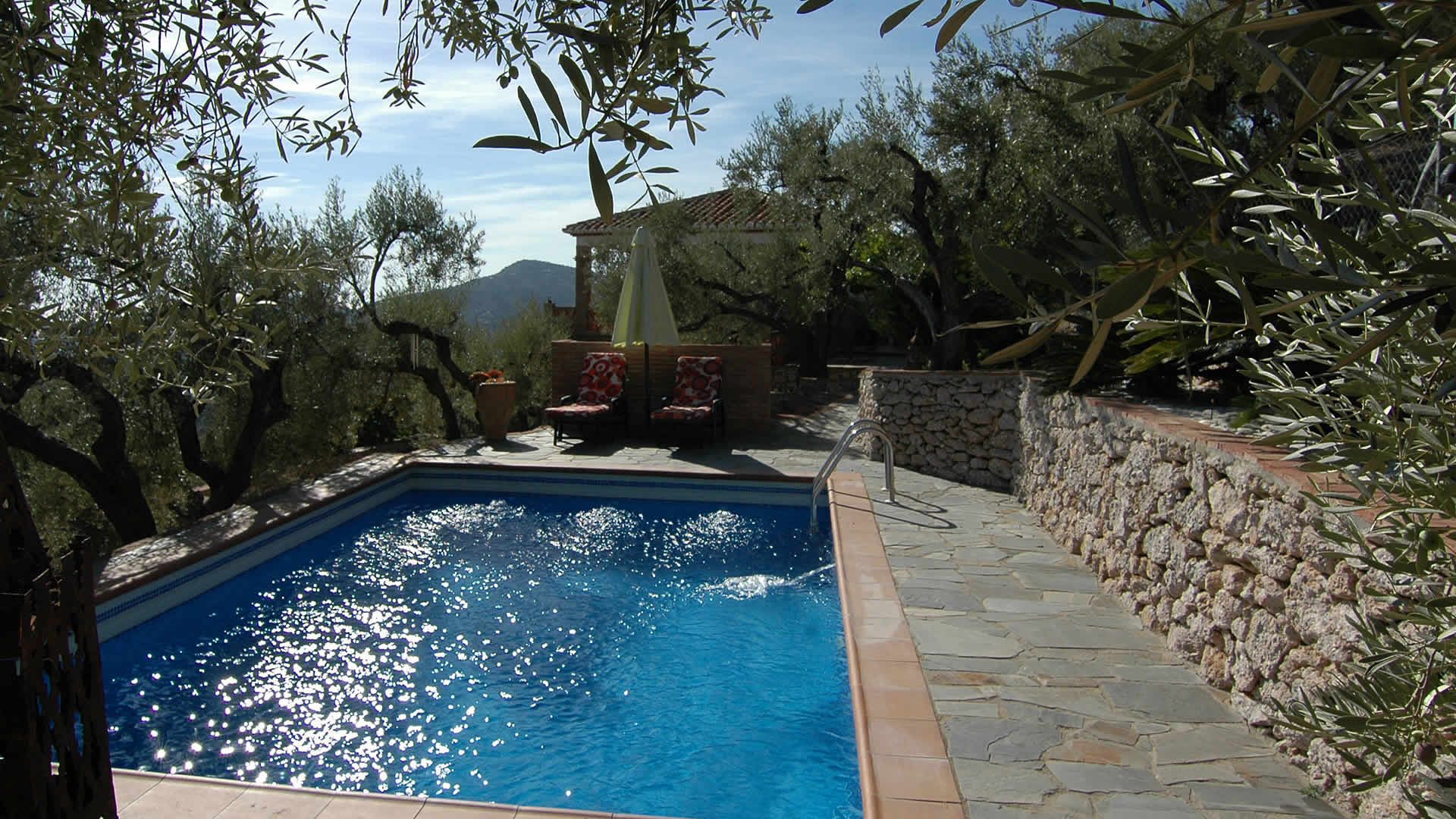 Le gîte est situé dans la campagne un peu au nord-est de Frigiliana, une très belle région. Il a été construit juste avant 1999, la même année que le terrain a été ajouté au parc naturel de la Sierra de Tejeda et Almijara. De nombreux sentiers feront la joie des adeptes de la marche et de la randonnée. Les personnes qui préfèrent rester à la maison apprécieront les jolis espaces à l'extérieur qui sont bien intégrés dans le paysage et entourés d'oliviers et de pins. Toute discrétion est assurée. La piscine privée (6x4 m) est entourée d'une terrasse ensoleillée et fournie de chaises longues, tandis que le coin barbecue adjacent constitue le lieu préféré pour vos dîners en plein air. Le gîte lui-même a une spacieuse véranda avec des meubles de patio et des vues panoramiques étonnantes, ce que nous avons déjà mentionné. Pour le shopping et les dîners à l'extérieur, vous trouverez un large éventail de possibilités dans le village blanchi de Frigiliana, à 5 minutes en voiture. Des plages où pratiquer les sports nautiques sont accessibles à Nerja, à seulement 10 minutes en voiture.