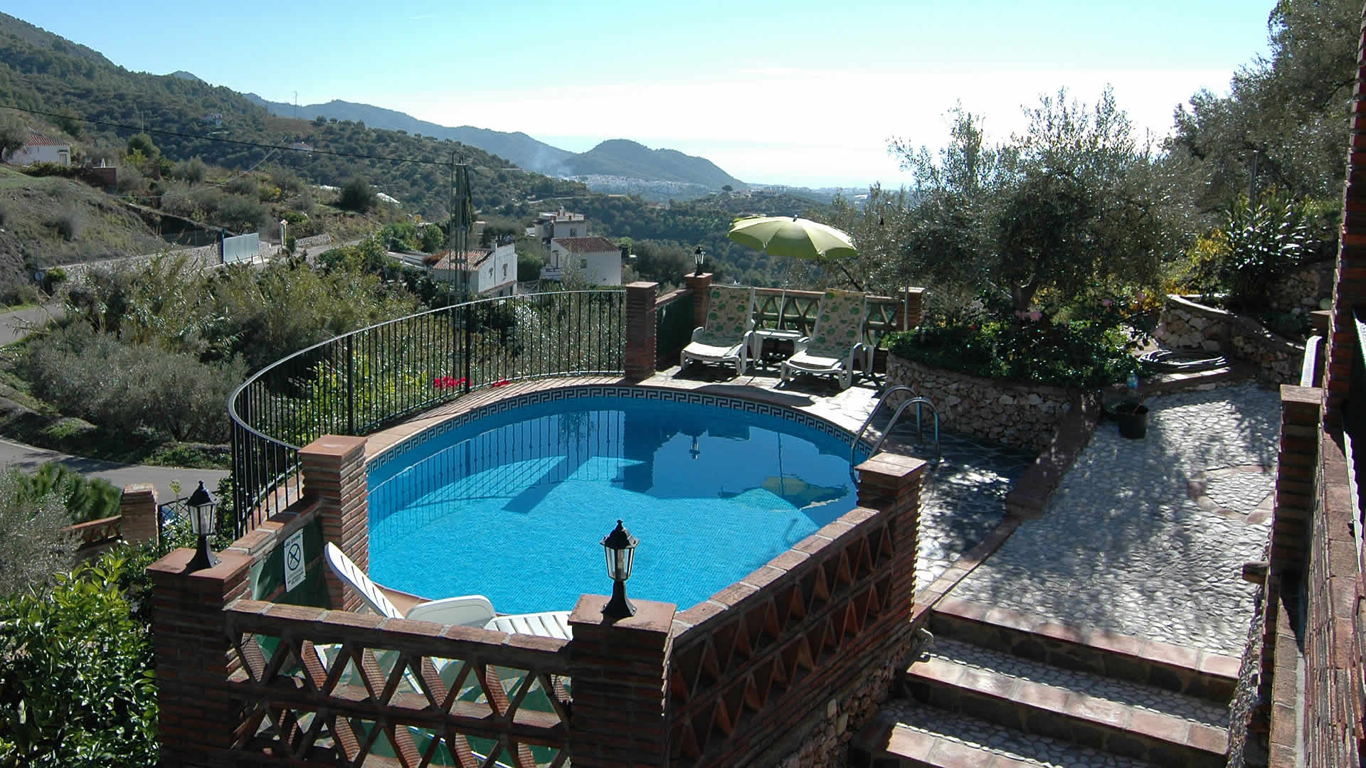 Rodeada de verdes colinas, además de tener unas impresionantes vistas sobre el mar, esta casa ofrece un entorno agradable para una estancia tranquila y relajante. El pueblo de Frigiliana (2,7 km), con muchos restaurantes, bares y tiendas de artesanÃa, es de fácil acceso. Sin embargo, la alegrÃa de vivir en un lugar tranquilo con su propia piscina y un buen restaurante (La Venta de Frigiliana) a pocos minutos a pie, no está sacrificada. Las fascinantes Cuevas de Nerja, justo al este de la ciudad, bien merecen una visita.Una gran terraza cubierta a lo largo de toda la longitud de la casa es el lugar perfecto para relajarse y admirar la piscina vallada más hacia abajo. Unos pocos escalones conducen al patio donde está la barbacoa (con un fregadero) para las cenas al aire libre. El mobiliario de jardÃn está provisto. Unos escalones más hacia abajo conducen a la piscina ovalada (6x3 m, de 1 a 1,75 m de profundidad), que ocupa un lugar central en la propiedad con una hermosa vista desde la terraza. Hay tumbonas para disfrutar del sol y sombrillas si usted prefiere estar en la sombra. El jardÃn adorna la vista con sus rosales, flores aromáticas y olivos.