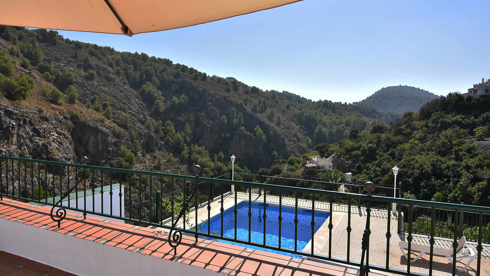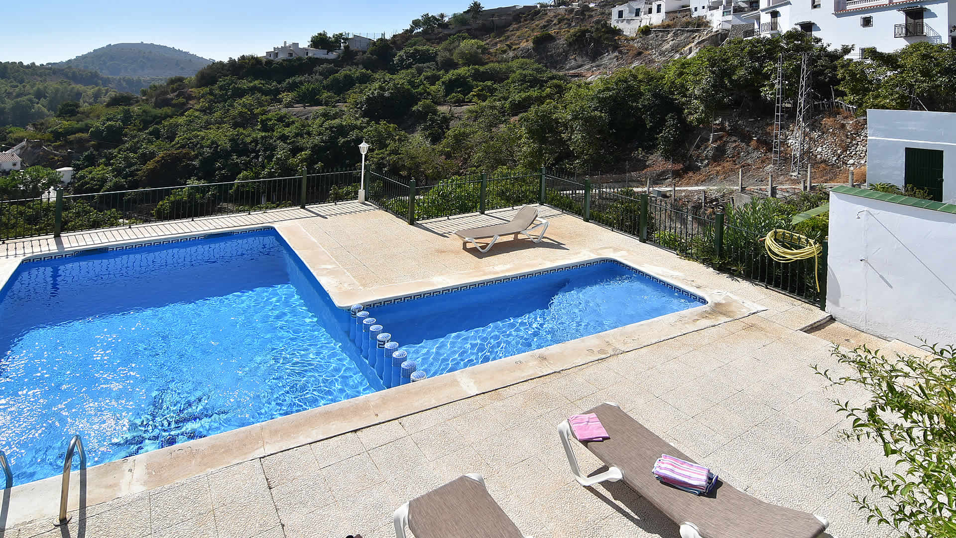 Dit vakantiehuis ligt aan de Camino Boticario, op een paar minuten lopen van het bekende restaurant Virtudes en de beroemde witte straatjes van Frigiliana dat meermaals verkozen werd tot het mooiste dorp van Andalusië. Hier hebt u de auto niet nodig: bushalte en taxiâs bevinden zich op 150 meter van de villa en brengen u probleemloos naar de mooiste stranden van Nerja of naar de vele musea in Malaga. Vanaf de villa kunt u ook prachtige wandelingen maken door de bedding van de dichtbijgelegen rivier Higueron of om een kijkje te nemen aan de westkant van Frigiliana.Buiten heeft dit vakantiehuis een ruim zonneterras met ligstoelen en een L-vormig privé zwembad van 7.5m x 7.5m x 4m en 0.8m - 2.20m diep, met aan het ondiepe einde een apart deel voor kinderen. Op een hoger niveau en bereikbaar vanuit de zitkamer bevindt zich een tweede terras, compleet met patiomeubilair en parasol - een ideale plek om buiten te eten en met fantastische uitzichten over de landelijke omgeving. Naast het zwembad vindt u een ingebouwde barbecue.