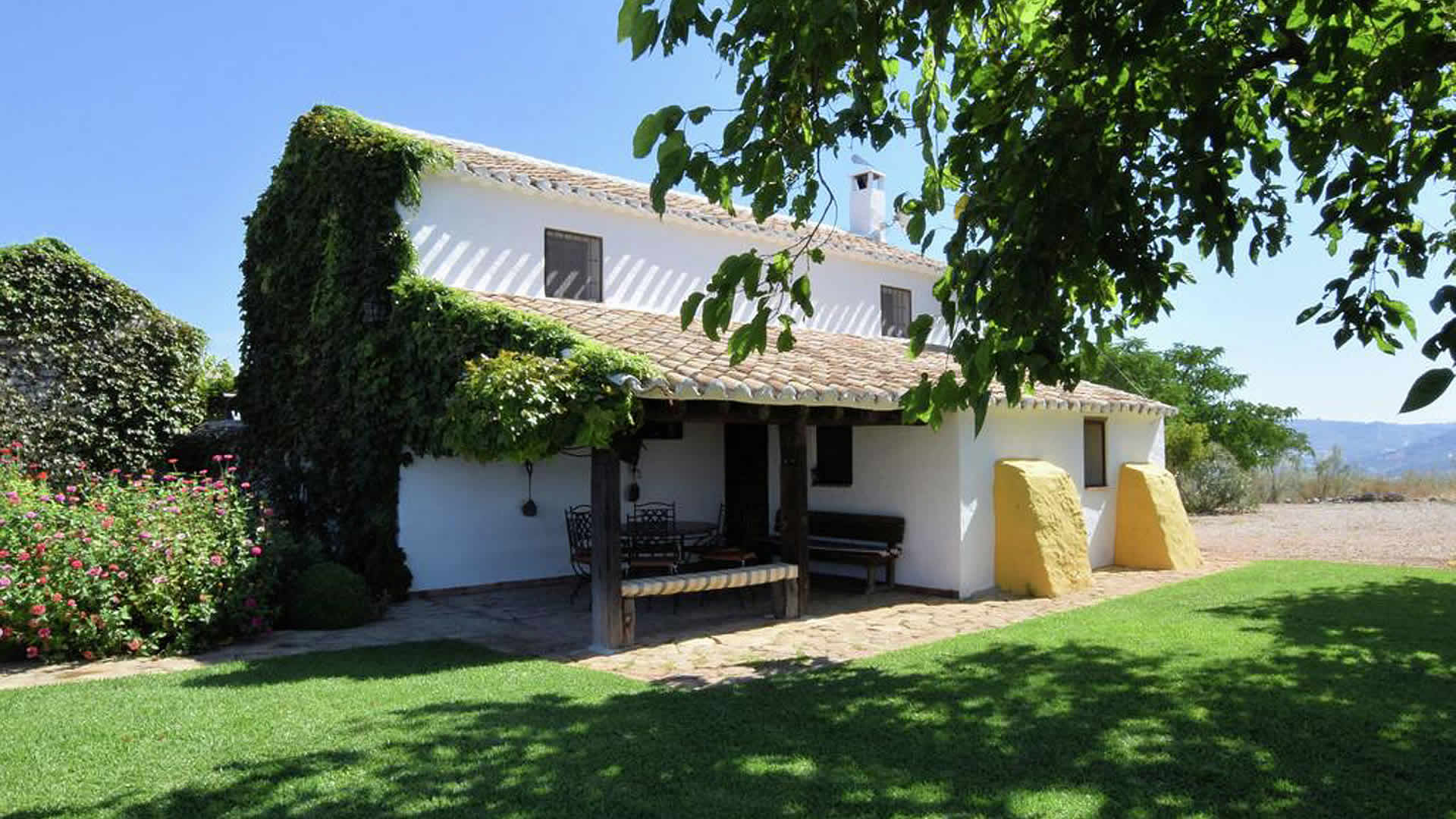 Het op 1,5 km liggende Fuentes de Cesna is bereikbaar via een onverharde weg dwars door de mooie olijfboomgaarden. De hoeve biedt een geweldige uitzicht op het omringende landschap dat doorloopt tot aan de provincies Jaen, Granada en Malaga. Door de situering is deze hoeve een uitstekend vertrekpunt voor uitstapjes naar Granada (90 km), Antequera (64 km), en Córdoba (114 km). De hoofdingang loopt via een door een prachtige druivenboom overdekte patio, die tevens voorzien is van een barbecue. De oude kippenren fungeert tegenwoordig als panoramische uitkijk. Aan de achterzijde biedt een schaduwrijke veranda uitzicht op het grasveld het privé-zwembad van 4 bij 9 meter.