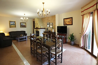 VILLA TRES DORMITORIOS - El interior de la casa destaca por su cuidado diseño y su abundante luz natural que inunda hasta el último rincón. Es una casa de calidad con ambiente rústico, ya que se han respetado todos los elementos tradicionales, como la piedra o las vigas de madera centenaria. Esta decorada con mucho sabor por sus propietarios, usando elementos tradicionales con predominio de colores crudos, tejidos vegetales, madera y cristal, con buen ojo para el detalles. Todas las estancias se encuentran en la misma planta. El salón/comedor dispone de 2 sofás, chimenea, televisión y dvd. La amplia cocina esta muy completa, con vitro-cerámica de 4 fuegos, horno, microondas, frigorÃfico, lavadora y lavavajillas. Hay tres dormitorios decorados con elegancia (1 con cama de matrimonio, 2 con 2 camas individuales cada uno). Los dos cuartos de baño son muy amplios y cuidados. Junto a la piscina hay una pequeña bodega que estará lista para el uso durante el verano del 2005. VILLA DOS DORMITORIOS - Como su hermana mayor, aquà también destaca la calidad y el cuidado diseño. La decoración es similar, rústico con toques de elegancia. Todas las estancias se encuentran en la misma planta. El salón/comedor dispone de 2 sofás, chimenea, televisión y dvd. La cocina semi-abierta esta muy bien equipada, con vitrocerámica de 4 fuegos, horno, microondas, frigorÃfico, lavadora y lavavajillas. Los dos dormitorios son bonitos (1 con cama de matrimonio, otro con 2 camas individuales. Dispone de dos cuartos de baño, con estilo.Nota: Dispone de conexión a Internet WiFi (gratuito).