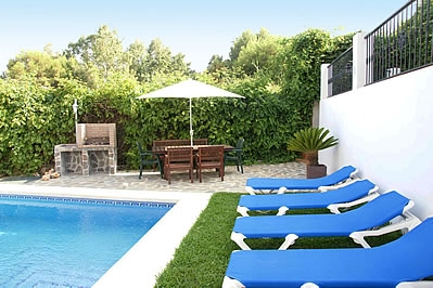 La villa está situada en las afueras de Mezquitilla, un pequeño pueblo de pescadores a sólo 13 km de la animada localidad de Nerja y a 40 minutos en coche de Málaga en la Costa del Sol, por lo que disfruta de una localización ideal para aquellos y aquellas que desean explorar AndalucÃa. La casa está a sólo 500 m de la playa, aunque la primera parte del camino es un poco empinada y por lo tanto menos ideal para hacerse andando. Hay una gran variedad de playas en las cercanÃas, todas con diferentes caracterÃsticas y un gran número de excelentes restaurantes. Para los más pequeños, muchas playas disponen de una zona de juego infantil y algunas incluso de mesas de ping-pong! El parque acuático de Torre del Mar está sólo 7 minutos en coche. Hay numerosas tiendas y mercados cercanos, incluyendo un centro comercial en Vélez (también a 7 minutos). El jardÃn de la villa se encuentra en dos niveles: en la planta baja tenemos el césped y una terraza adyacente a la sala de estar, el lugar ideal para cenar al aire libre; en un nivel inferior, se encuentra la piscina privada (8x4 m), barbacoa, tumbonas y suficiente espacio para que los niños jueguen.