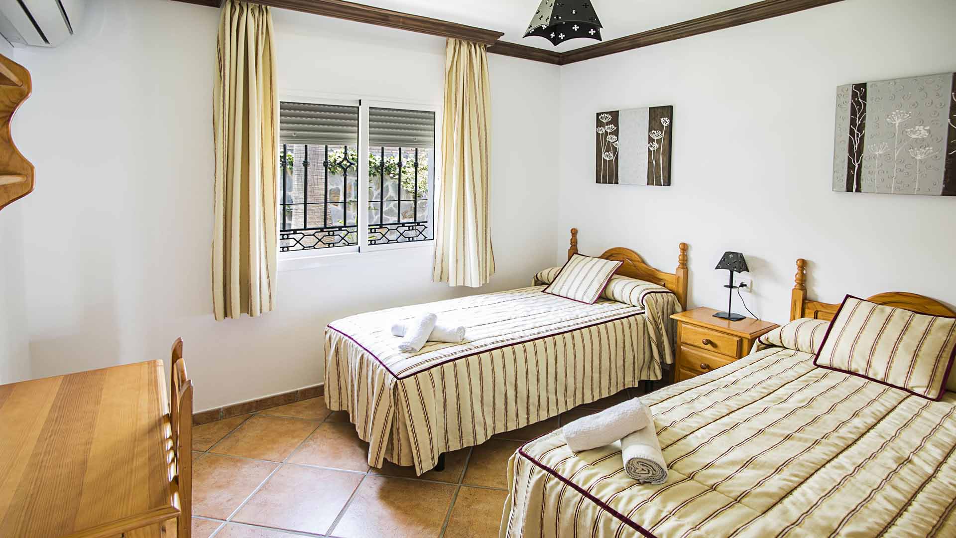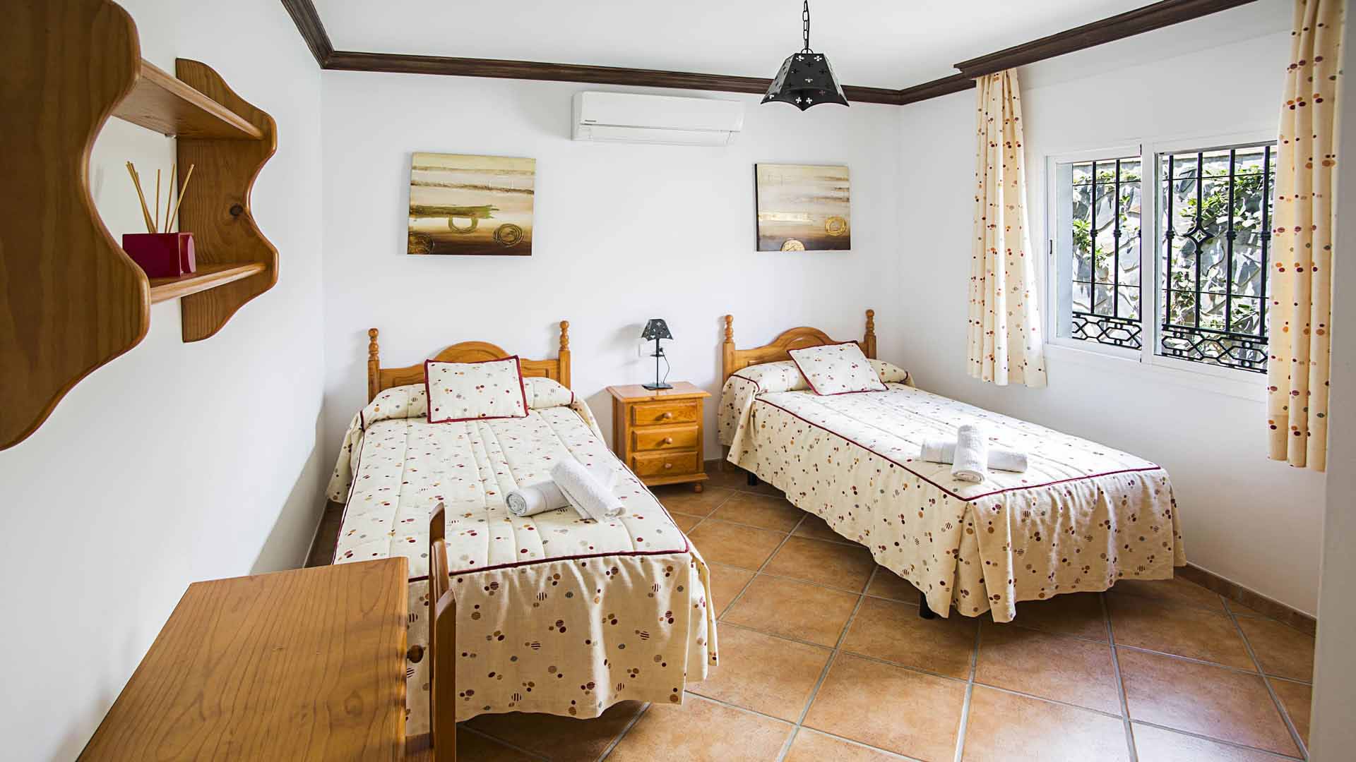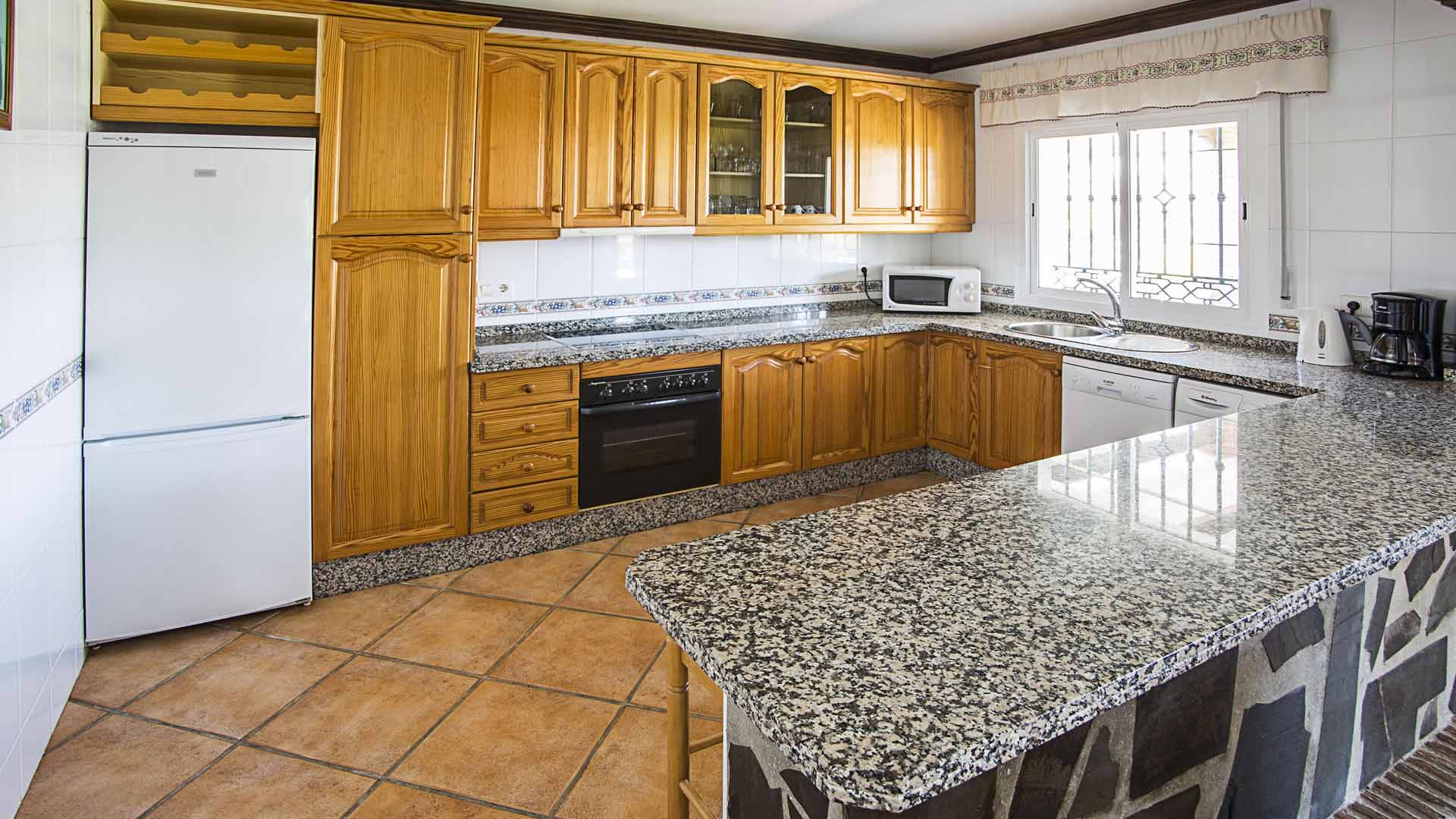 Dit is een heel comfortabele villa met uitstekend meubilair en alle kamers gelijkvloers. Vanaf het terras komt u via de voordeur in de comfortabel gemeubileerde lounge en eetkamer. Een grote stenen open haard karakteriseert de lounge en kan gebruikt worden voor de koelere maanden. Tevens is de lounge voorzien van satelliet tv en een radio/CD speler. Een ontbijtbar scheidt het eetkamergedeelte van de zeer goed uitgeruste keuken. Deze is voorzien van een keramische kookplaat, oven, koelkast/vriezer, magnetron, vaatwasser en een wasmachine. Er zijn drie slaapkamers, één tweepersoonskamer en twee kamers met aparte bedden, en twee luxe badkamers. Er is air conditioning (koud & warm) aanwezig in de slaapkamers en woonkamer. Een WiFi internet verbinding en kluisje zijn aanwezig (beiden gratis).