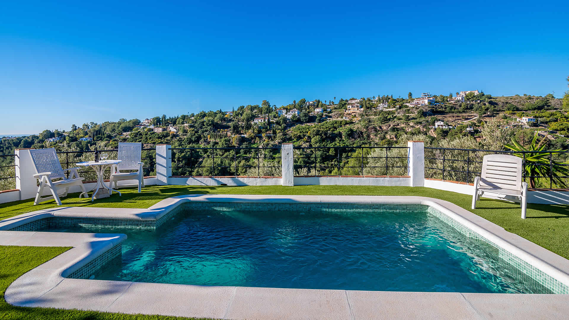 La casa se localiza al norte de Nerja, dentro del Parque Natural de Sierra Tejeda, en plena naturaleza. Está presente la flora y fauna tÃpicamente mediterránea y con un poco de suerte hasta podrá ver ciervos, jabalÃes y otros animales salvajes del Parque! Los últimos 50 metros a la casa se hacen por una empinada pista de cemento. Una vez en la casa nos encontramos con un sombreado porche, un lugar ideal para echar una siesta, con espectaculares vistas a la campiña circundante y que alcanzan hasta la costa. El porche continúa con una soleada terraza equipada con tumbonas y piscina privada (5 x 3m). Se incluye una barbacoa para sus comidas al aire libre.