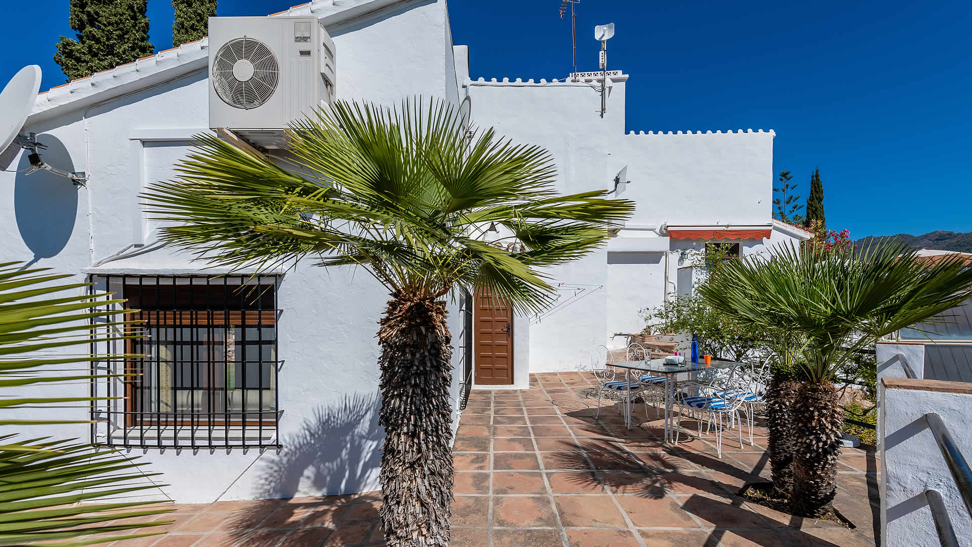 Entre 1996 y 2000 la casa fue completamente renovada y restaurada por Javier y Rosario, pero manteniendo su propio carácter y esencia hogareña. Si el jardÃn ya le da a uno la sensación de %u201Cllegar a casa%u201D, también ocurre lo mismo desde el momento en que entramos en la casa a través de la preciosa puerta de madera con forma de arco. La sala de estar, con vistas al mar y la montaña, es muy luminosa y cada detalle tiene el objetivo de hacerla más cómoda: una biblioteca con una amplia selección de libros y catálogos (incluyendo bastantes sobre arte), TV por satélite, DVD y radio-CD. También hay una variedad de pelÃculas en DVD y CD%u2019s de música. Un cuadro original de grandes dimensiones y pintado por un artista local cuelga en la pared del comedor (casi todos los cuadros de la casa son obras originales). La cocina, justo frente a la sala de estar, está totalmente equipada con vitrocerámica, horno, microondas, frigorÃfico combi y lavavajillas. También hay plancha y tabla de planchar. La lavadora está situada en un cuarto lavadero.A un nivel algo más alto encontraremos dos dormitorios y dos cuartos de baño bastante amplios. El dormitorio doble consta de dos camas individuales, cada una con mesita de noche, un amplio armario y un sillón. Frente a la puerta del dormitorio hay un cuarto de baño totalmente equipado con bañera/ducha, lavabo, inodoro, bidé y secador de pelo. El dormitorio principal es espacioso y tiene su propio baño con ducha, lavabo e inodoro. Está amueblado con cama de matrimonio y mesitas de noche, amplio armario, cómoda con cajones, tocador y un sillón. Hay numerosos cuadros originales decorando las paredes. Las vistas al mar y a la cadena montañosa de Frigiliana son espectaculares, especialmente cuando se sale por las puertas del patio en dirección a la terraza del dormitorio principal.La casa dispone de detectores de humo y caja fuerte.¿Qué opina entonces? ¿Desea ser parte del Diario de un algarrobo?Notas:- Dispone de conexión a Internet WiFi (gratuito).- Dispone de aire acondicionado en toda la casa; es opcional y el coste es de 50 ⬠por semana.