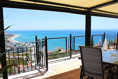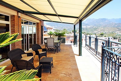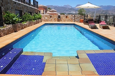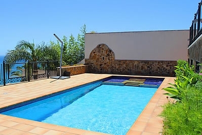 Esta villa de lujo se organiza en 4 plantas, todas con vistas al mar. En la planta baja superior (a nivel de calle), donde se encuentran el salón y la cocina, una espléndida terraza con mobiliario de jardÃn le espera, el sitio ideal para un desayuno soleado! Una escalera conduce a las habitaciones en una planta inferior, cada una de ellas con su propia salida a la terraza. Nueve escalones más abajo conducen a la planta sótano, donde hay también una estupenda terraza que rodea la piscina privada (9x4 m), con chorros de hidromasaje en un rincón. Se proporcionan tumbonas y sombrillas. La planta más baja (a nivel de jardÃn) consiste en un pequeño jardÃn con césped y una zona de barbacoa con una cocina de verano con nevera/congelador, encimera y fregadero. Dispone de muebles de jardÃn.La villa goza de una ubicación privilegiada, con orientación sur-este y vistas a la zona residencial de Punta Lara. La playa y los restaurantes de Punta Lara están a unos 600 metros, mientras que Nerja se encuentra a 5 minutos en coche. Dispone de dos plazas de aparcamiento en frente. Debido a la empinada subida hasta la casa, es indispensable tener coche, y el número de escaleras en el interior y en el jardÃn la hacen inadecuada para personas con dificultades para caminar.