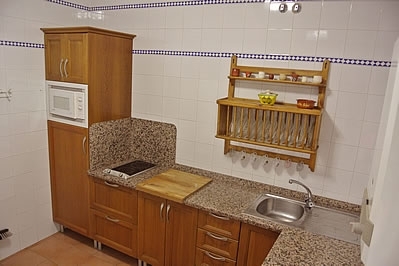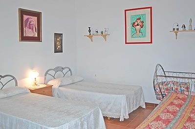 El interior de la casa es sencillo y realizado en estilo clásico. El salón, cocina y baño común se encuentran en la planta baja, los dormitorios y segundo baño en la primera planta. El salón dispone de chimenea, sofá para 3 personas y 2 butacas, mesa comedor para 6 personas y televisión. La cocina está equipada con placa vitrocerámica de 2 fuegos, frigorÃfico, microondas y lavadora. El baño principal de la vivienda está equipado con wc, lavabo y bañera con ducha. El dormitorio principal tiene cama de matrimonio, los otros dormitorios 2 camas individuales y 1 sofá-cama cada uno. El baño de esta planta es completo con media bañera ducha. Dispone de aire acondicionado en los 3 dormitorios de la planta alta, y de un ventilador en el salón. Nota: Dispone de conexión a Internet WiFi (gratuito).