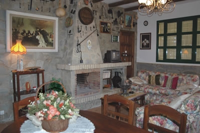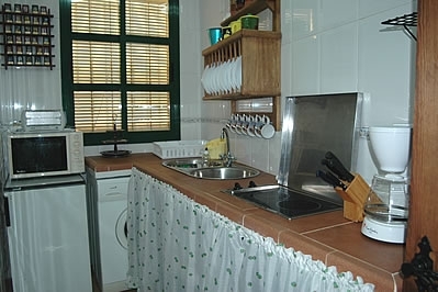 El interior de la casa es cómodo y realizado en estilo rústico. Todas las estancias se encuentran en la planta baja. El salón dispone de chimenea, 2 sófas, 2 sillones de madera, mesa comedor para 6 personas y televisión. La cocina esta equipada con vitrocerámica de 4 fuegos, frigorÃfico, microondas y lavadora. El baño principal de la vivienda esta equipado con wc, lavabo y media bañera con ducha. Los dormitorios tienen camas individuales que pueden juntarse (bajo petición). Hay otro baño con wc, lavabo y placa de ducha. Dispone de aire acondicionado en los 3 dormitorios. Nota: Dispone de conexión a Internet WiFi (gratuito).