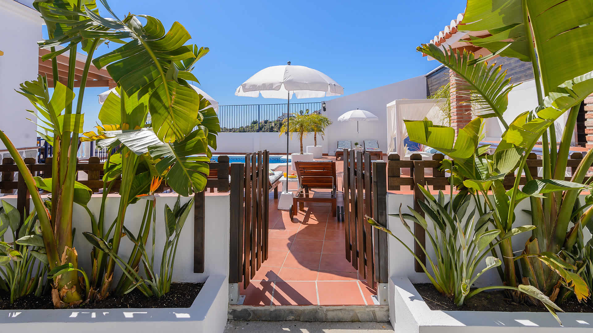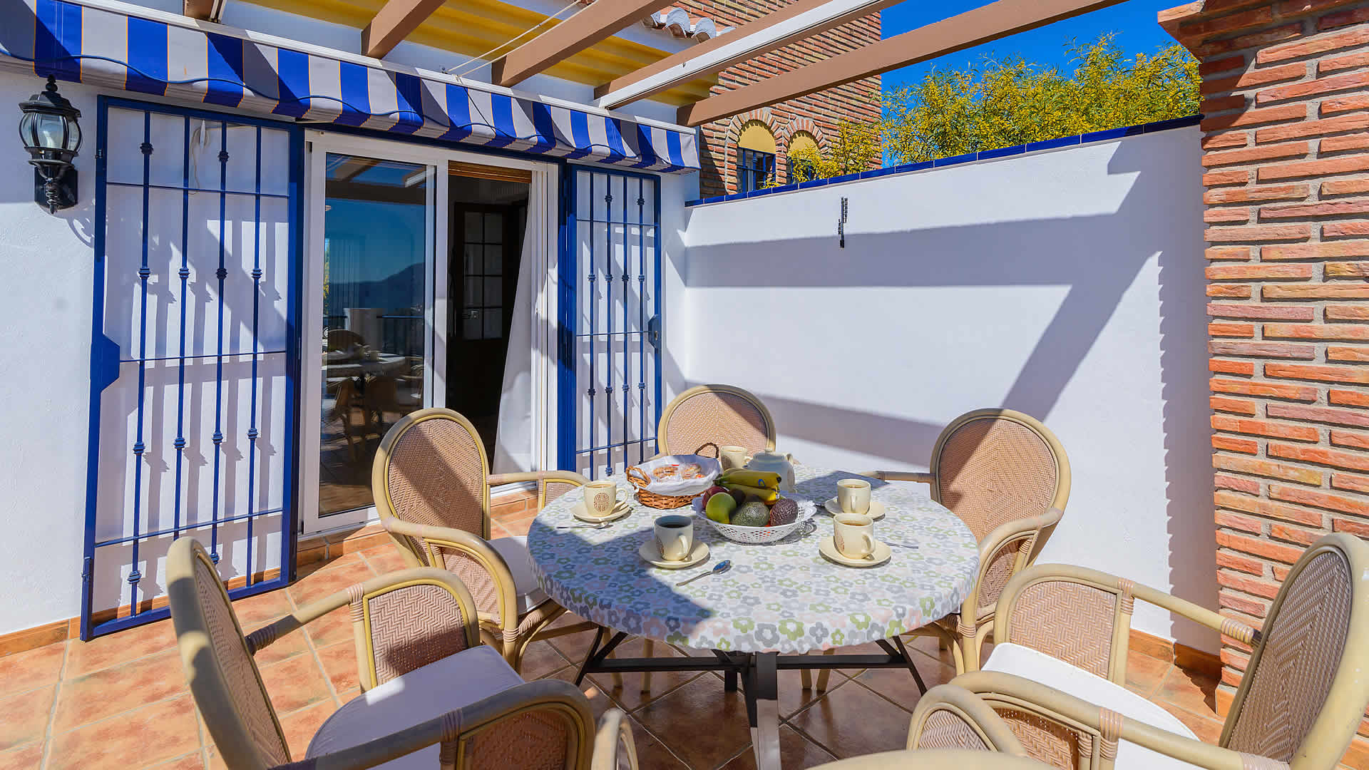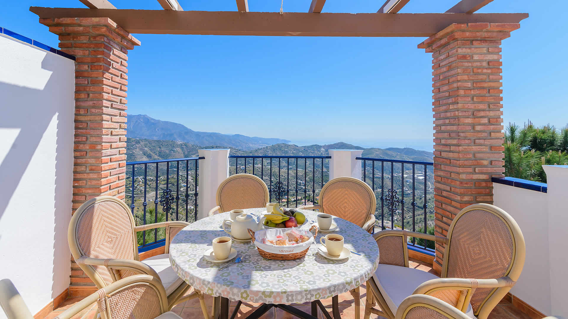 Su majestuosa situación, en una zona muy tranquila rodeada de almendros, facilitará que se sentirá en un lugar privilegiado, disfrutando de maravillosas vistas al pueblo, al mar y como telón de fondo las frondosas sierras de Almijara y Tejeda. A las playas de Torrox Costa (8 km) se llega en 15 minutos en coche, mientras las tiendas, restaurantes y bares de Torrox Pueblo (6,5 km) están aun más cerca. Es ideal para pasar un verano con la familia o amigos. Disfrutará de las comidas en la estupenda zona exterior con amplias terrazas: a la primera se accede desde el salón comedor y a la otra se encuentra junto a la piscina. La tercera terraza esta situada junto al dormitorio principal. La piscina de 7x3,5 metros, es ideal para tomar el sol (hay hamacas). Cada terraza disfruta de unas excelentes vistas y los amantes de la parilla tendrán una barbacoa a su disposición.
