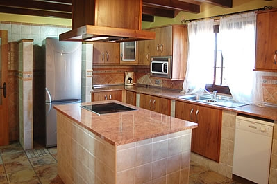 Todas las habitaciones se encuentran en la planta baja. Desde el porche cubierto, la puerta principal se abre a una confortable y espaciosa sala de estar, amueblada con un sofá, sillones, una chimenea, televisión de pantalla plana de 42" con conexión por satélite, DVD y equipo musical. Hay aparte una zona de comedor, contigua a la sala de estar y que cuenta con una mesa extensible. La cocina está independiente y bien equipada con vitrocerámica de cuatro fuegos, frigorífico/congelador, horno, microondas, lavadora y lavavajillas. También hay una despensa y una zona adicional para desayunar/comer junto a la cocina. El dormitorio principal presenta una cama de matrimonio, armario empotrado y baño privado con ducha, lavabo, WC y bidé. El segundo dormitorio es triple, con una cama de matrimonio, una cama individual y un armario empotrado. El tercer dormitorio tiene dos camas individuales, armario empotrado y cuarto de baño con ducha, lavabo y WC. Un cuarto de baño adicional para uso compartido está equipado con bañera-ducha, lavabo y WC. También hay un armario empotrado adicional, plancha y tabla de planchar.