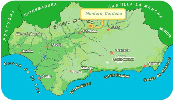 De la terrasse ensoleillée au niveau du premier étage, un des traits typiques de l'Andalousie peut être apprécié : les nombreuses acres d'oliveraies occupant toute la campagne avec la magnifique Sierra Morena en arrière-plan. La piscine de bonnes dimensions (7x13 m) se trouve également à ce niveau. Une route de terre battue de 800 m mène à l'entrée principale qui offre aussitôt un patio traditionnel où vous trouverez un barbecue pour les repas en plein air. Un restaurant traditionnel est très bien situé au début de cette route. D'autres expériences gastronomiques vous attendent à l'un des bars à tapas de Montoro, une ville intéressante à 6 km en voiture. C'est une ville toujours fidèle à ses origines qui se dresse sur les rives de la rivière Guadalquivir bordée de maisons blanches, style typique de la région. La ville majestueuse de Cordoue n'est qu'à une demi-heure de route, une visite incontournable.