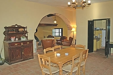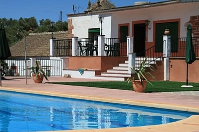 Le logement est sur deux niveaux avec un mobilier très modeste pour les voyageurs décontractés. Le rez-de-chaussée au niveau du patio offre une ambiance rustique avec des murs épais et des plafonds avec poutres apparentes. Il comprend un salon/salle à manger, une chambre à 1 lit 2 personnes, quatre chambres à 2 lits 1 personne, et une salle de bain entièrement équipée. Le salon/salle à manger avec une table à manger pour 6 personnes est l'endroit idéal où se réunir devant la grande cheminée ouverte pendant les soirées plus fraîches en hors-saison. Un escalier mène au premier étage où vous trouverez un autre salon/salle à manger avec deux canapés, 2 fauteuils, un téléviseur et une cheminée ouverte; la terrasse avec la piscine se trouve au niveau de cet étage. La cuisine principale du cortijo comprend une plaque de cuisson à gaz, un four, réfrigérateur / congélateur et lave-linge. Une chambre à 1 lit 2 personnes et une à 2 lits 1 personne se trouvent à cet étage.