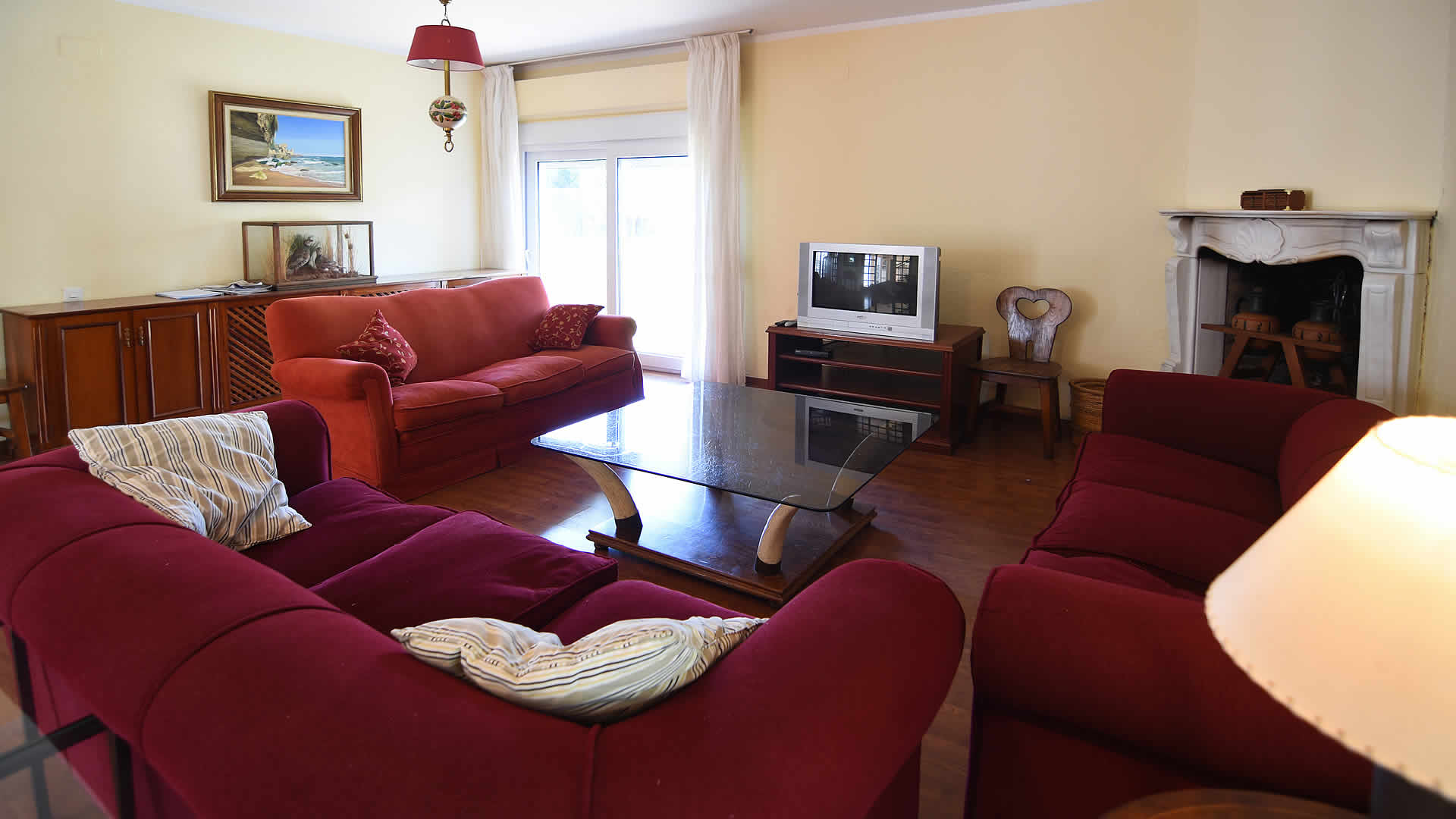 Amueblado con elegancia, esta villa ofrece un ambiente relajado y encantador. Casi todas las habitaciones ocupan la planta baja, con la excepción de un dormitorio y un baño en la primera planta. El salón/comedor y la cocina son muy amplias, la ultima equipada con vitroceramica, horno, frigorífico/congelador, microondas, lavavajillas y lavadora. La casa dispone de 7 dormitorios: 2 con cama de matrimonio (de 1,35m), 1 dormitorio con 4 camas de 90 (2 literas) y 4 dormitorios con 2 camas individuales. Uno de estos dormitorios se accede pasando por otro, es decir uno está dentro del otro. Hay 3 baños en la planta baja y 1 baño en la primera planta.