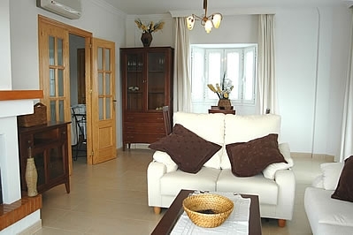 La luz interior va muy bien con los muebles de diseño, siendo ésta una casa muy cómoda decorada con excelente gusto por sus propietarios. Dispone de una sala de estar/comedor en la planta alta, con chimenea y TV satélite. La cocina, bien concebida con un toque de diseño italiano, cuenta con cocina eléctrica, horno eléctrico, microondas, nevera/congelador, lavavajillas y lavadora. En un nivel inferior se encuentran tres preciosos dormitorios: uno de matrimonio y dos dobles con dos camas. Dos baños completos para uso compartido completan este alojamiento.Notas:- Dispone de aire acondicionado en el salón y en los dormitorios (es opcional y tiene un coste de 50 ⬠por semana).- Dispone de conexión a Internet WiFi (gratuito).
