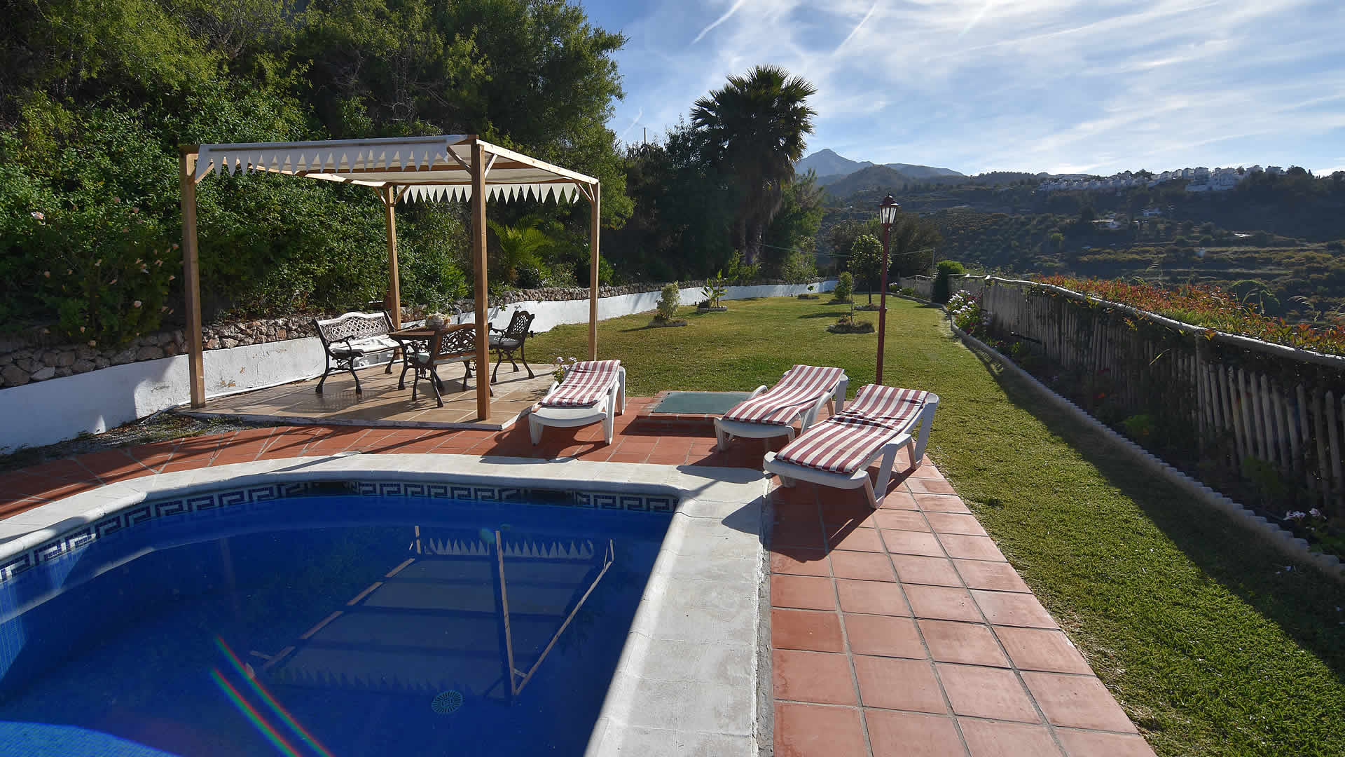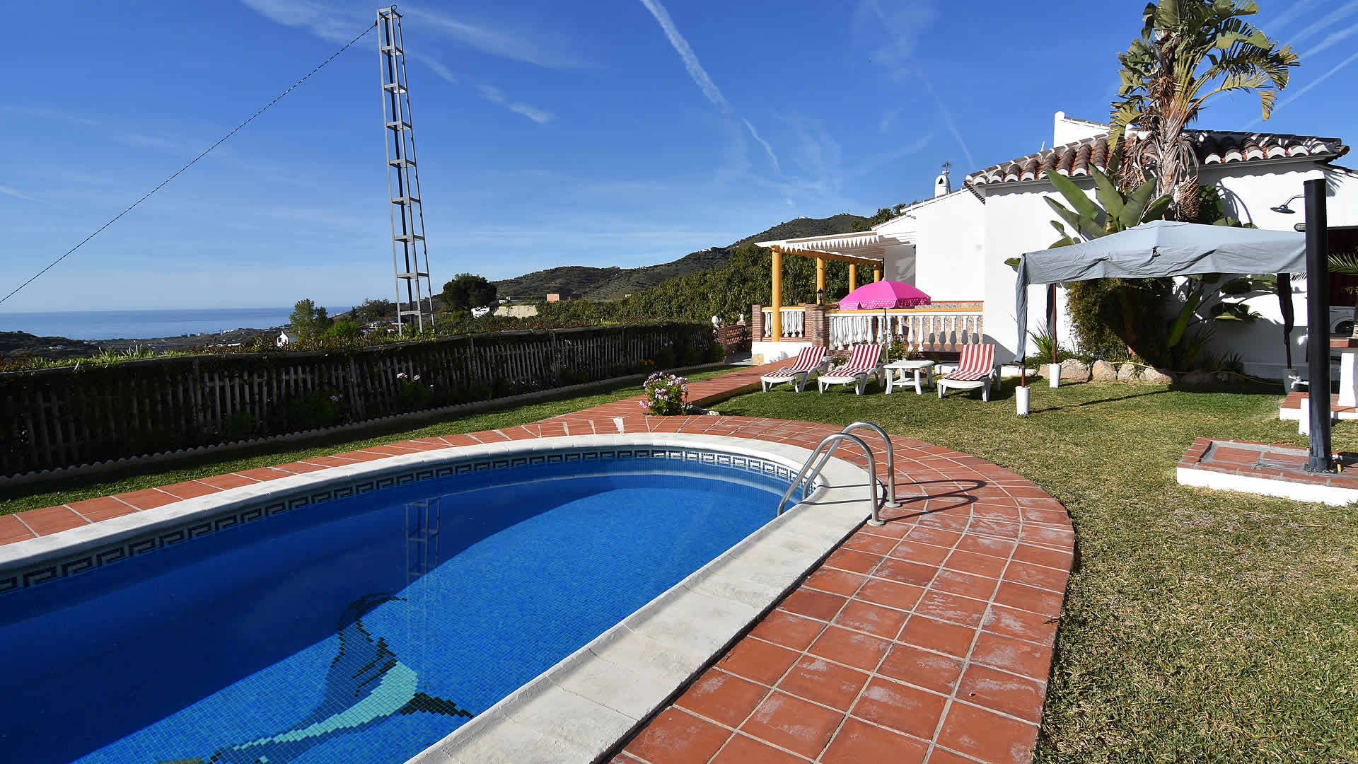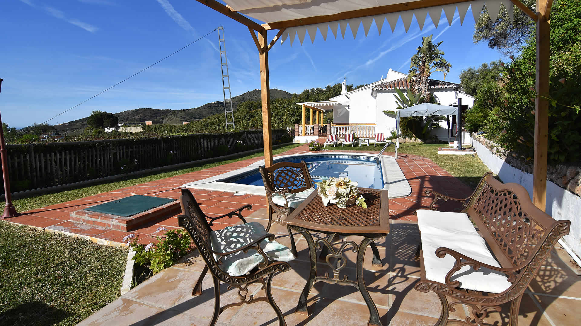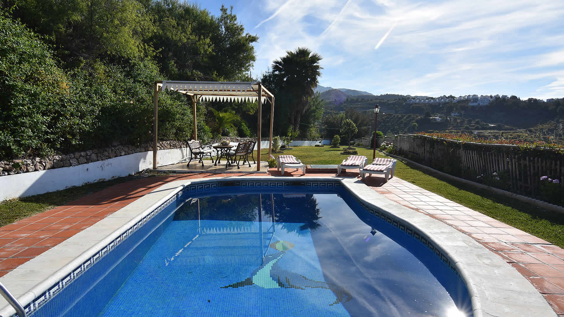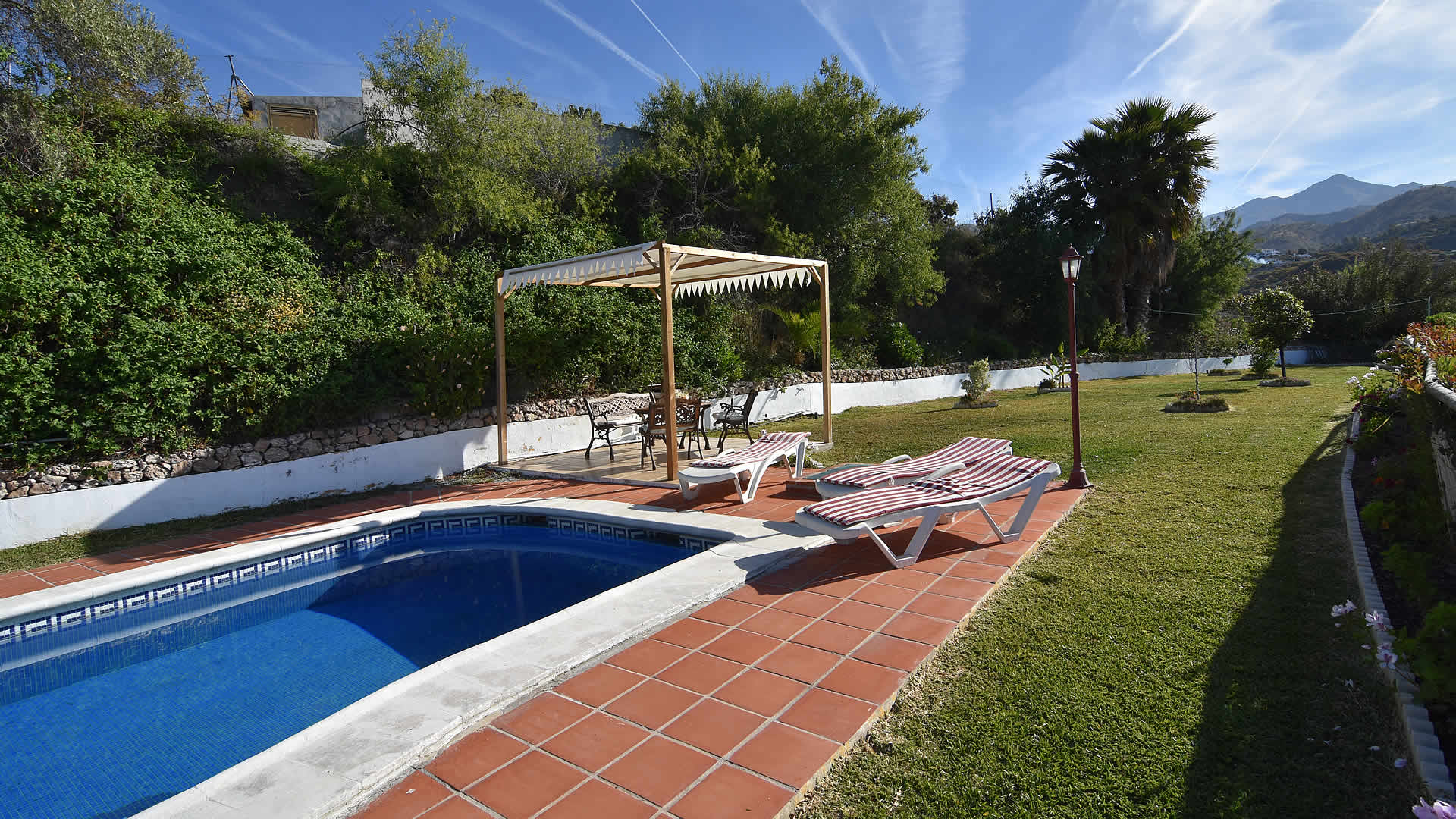 Acogedora casa de campo, a 4 km de Frigiliana, ubicada sobre una colina. Junto a la casa hay una sombreada terraza, que ofrece limpias vistas al paisaje. La piscina privada (7,70 m x 6,80 m) está rodeada de césped, ideal para familias con niños. Hay barbacoa y mesa de comedor para las comidas al aire libre. La casa disfruta de un emplazamiento reposado en el campo con cómodo acceso, aunque parte del camino transcurre por un carril de campo en buenas condiciones. Si decide salir un dÃa de excursión, puede visitar los tradicionales pueblos de los alrededores o la Alhambra de Granada. Para salir por la noche, Nerja ofrece una amplia selección de restaurantes, bares y discotecas.