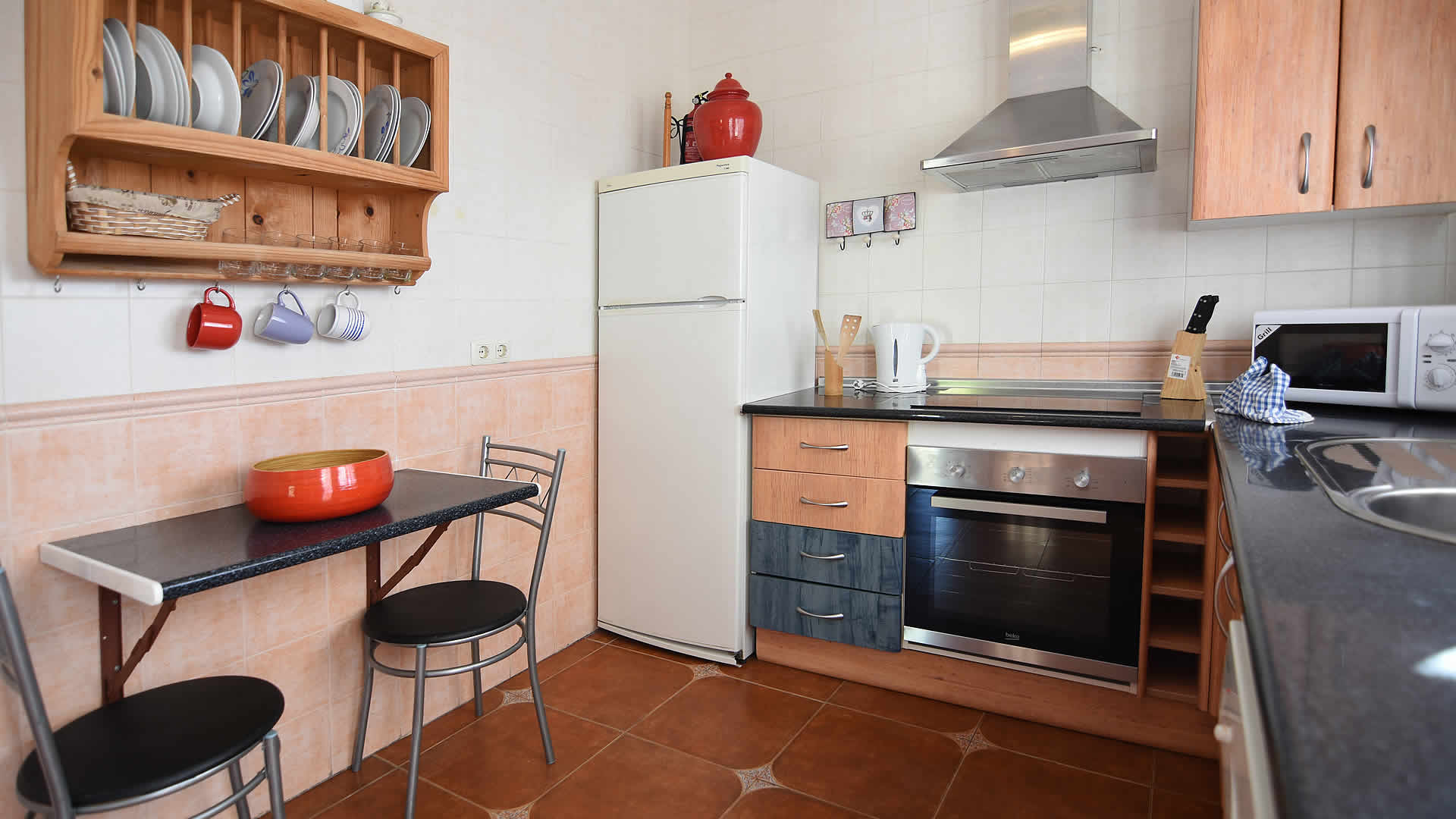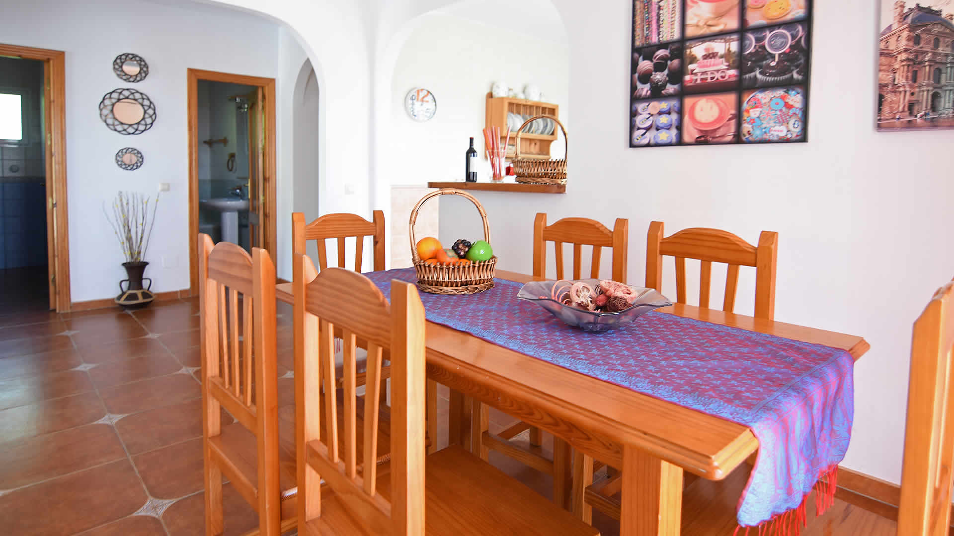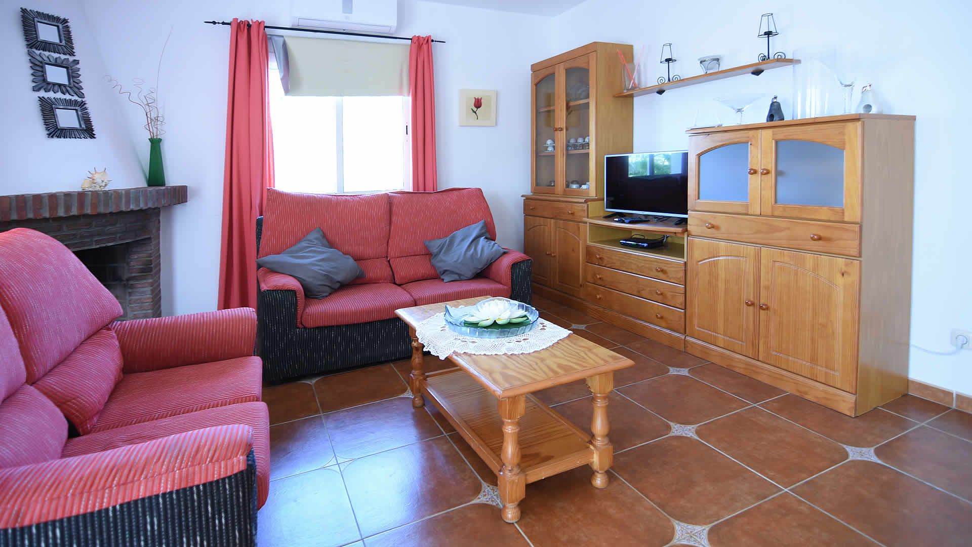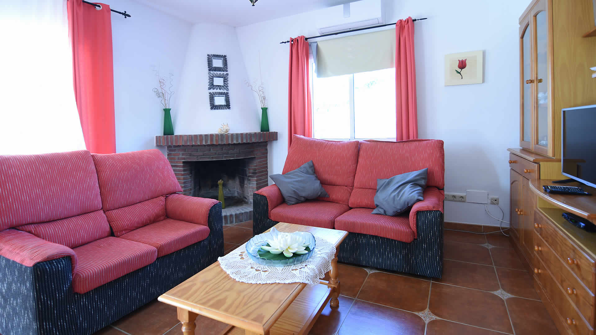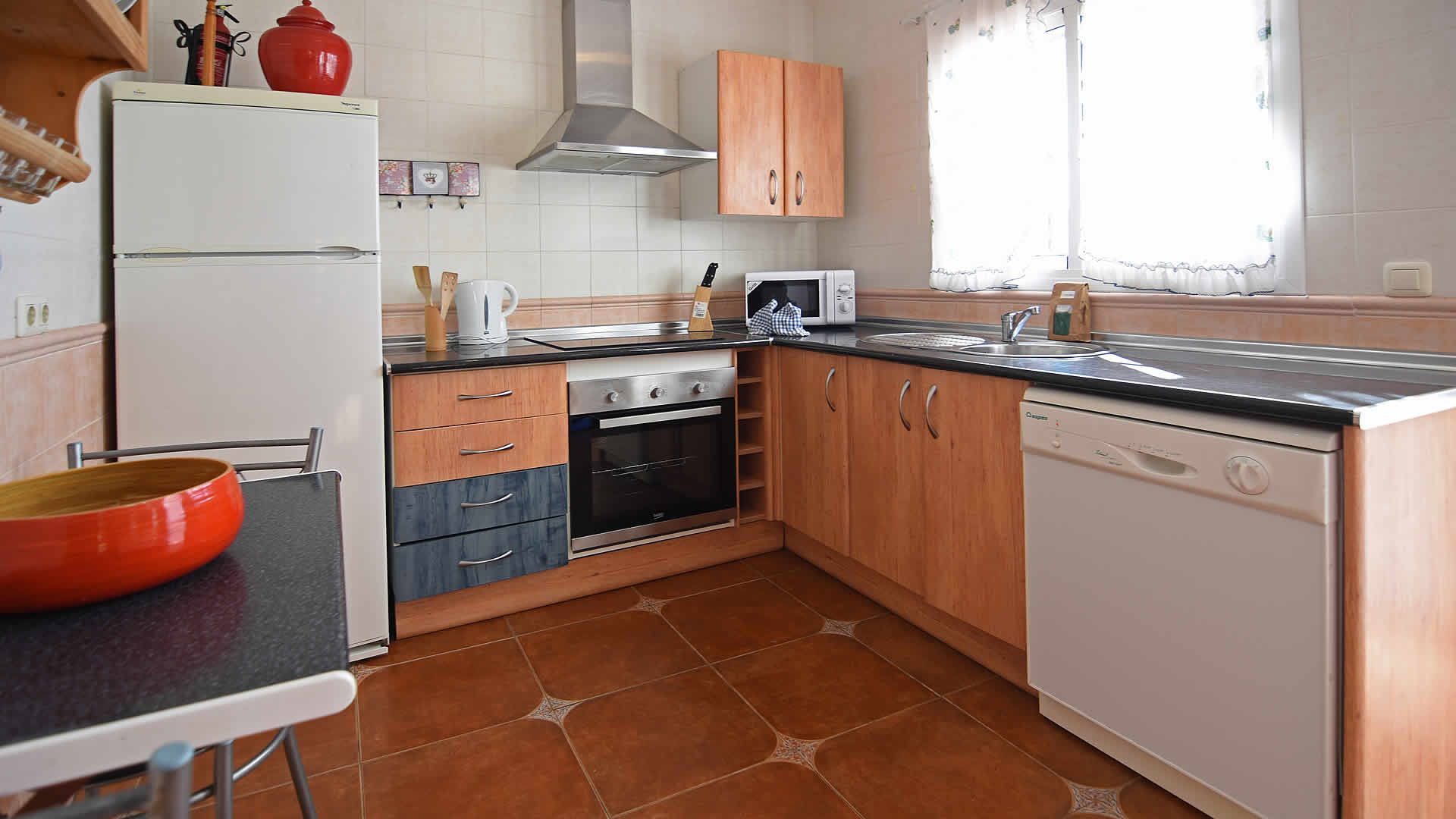 La casa tiene todas las estancias en una sola planta. El interior tiene un estilo rústico con losas tradicionales en el suelo. Los muebles son confortables y sencillos. El salón dispone de chimenea, mesa comedor, 1 sofá, 2 sillones y TV satélite. La cocina está equipada con vitro-cerámica, microondas, frigorÃfico/congelador, lavavajillas y lavadora. Dispone de tres dormitorios y dos baños.Notas:- Dispone de conexión a Internet WiFi (gratuito).- Dispone de aire acondicionado en el salón, aunque el aire frÃo debe notarse también en los dormitorios (incluido en el precio).