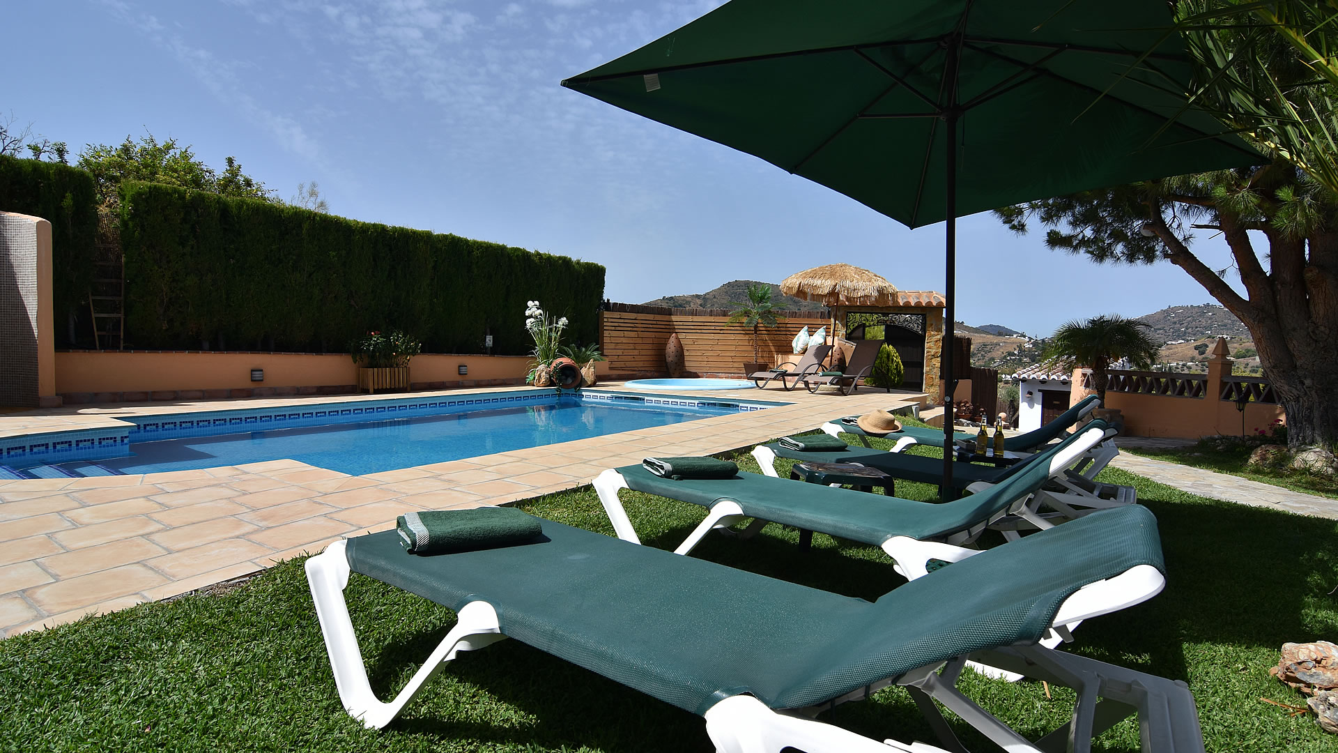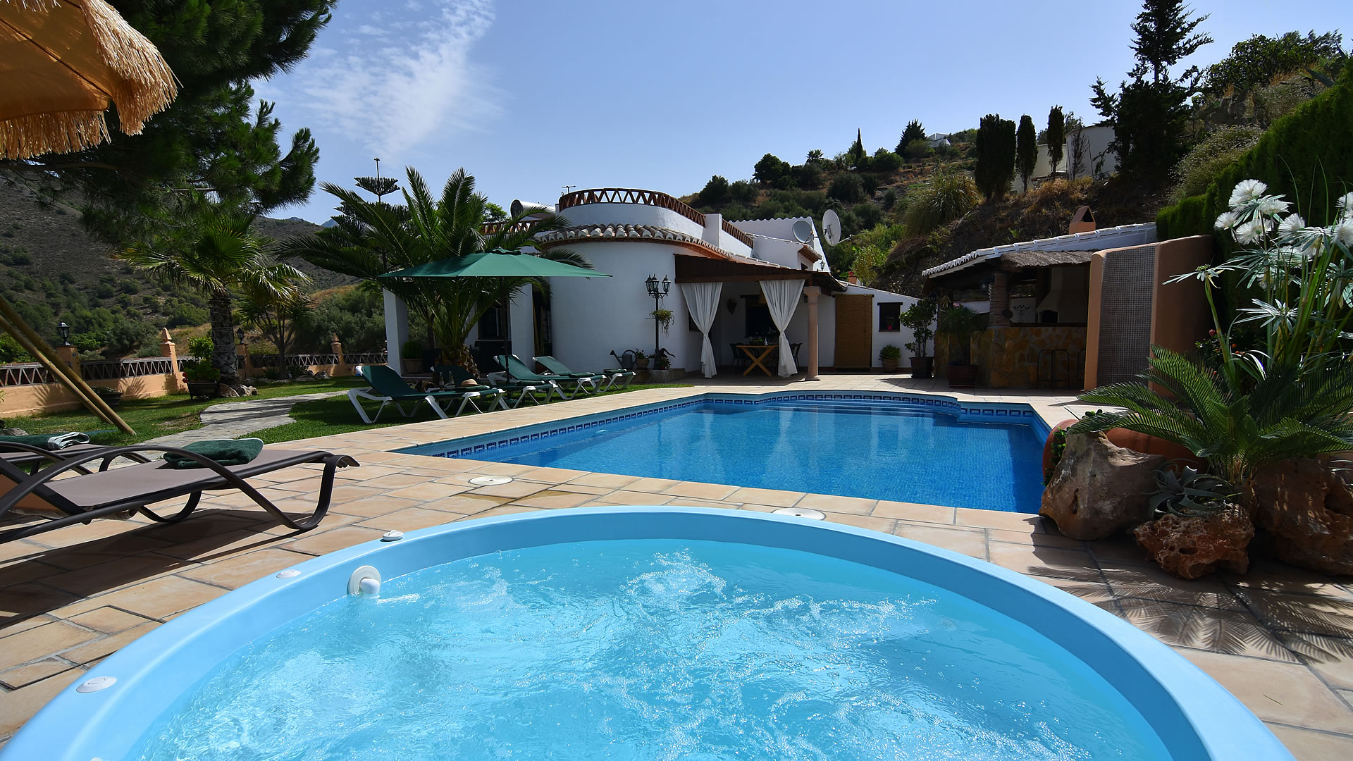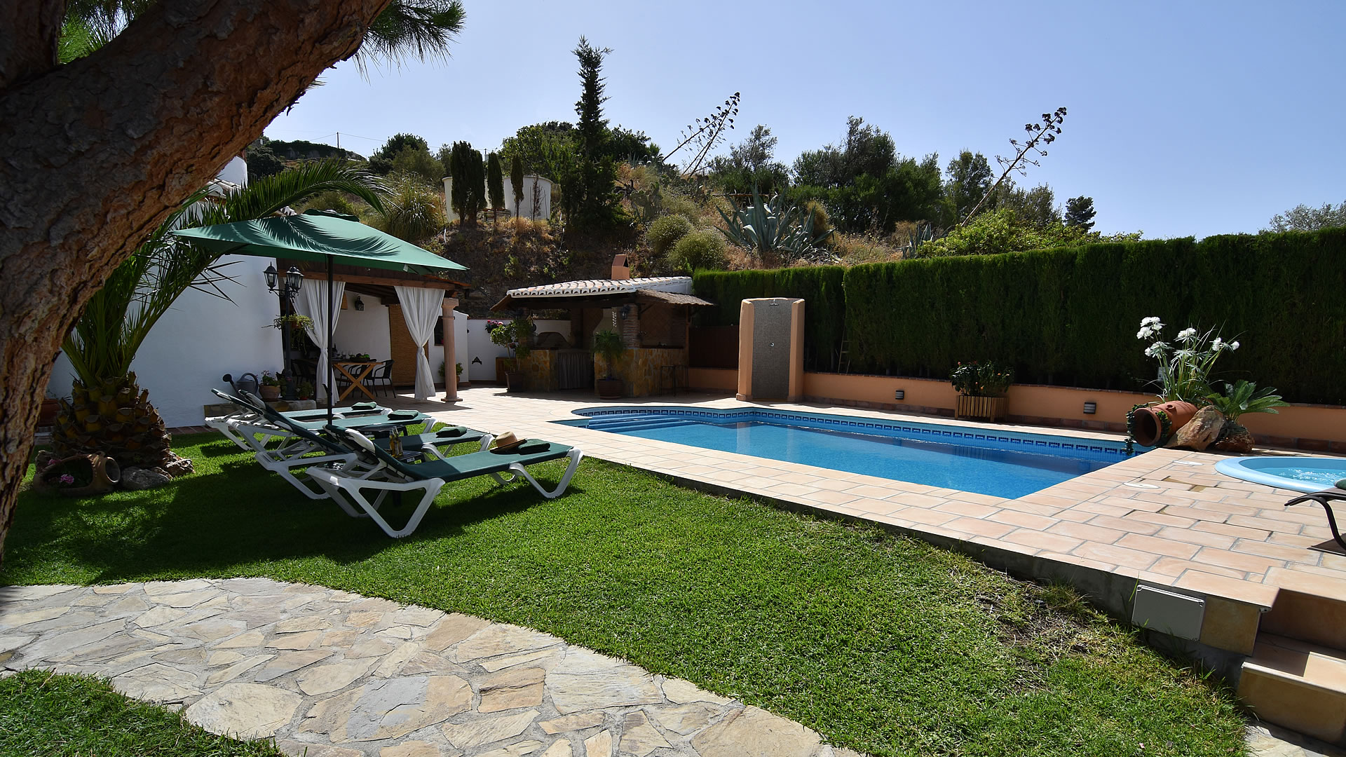 Esta preciosa casa independiente, en la que encontrará todo lo necesario para pasar unas espléndidas vacaciones de verano, se encuentra al final de un camino rural de cemento, a cinco kilómetros al noroeste de Frigiliana. El acceso a la propiedad se hace a través de una entrada privada, situada junto al tranquilo camino rural, y conduce a un jardÃn de césped y a una soleada terraza que rodea la piscina (7m x 4m; 1,20m profundidad). A la derecha podrá disfrutar de una cocina exterior a la sombra que cuenta con fregadero, frigorÃfico, barbacoa, encimera, utensilios de cocina, etc. ¡Perfecta para comidas al aire libre! A la izquierda y al otro lado de la casa encontramos una terraza con pérgola, una mesa de ping pong y más jardÃn privado. La casa está situada en la cima de un cerro, ofreciendo espectaculares vistas hacia Competa, Torrox y el campo andaluz. También es un enclave perfecto si quiere explorar AndalucÃa; los cercanos pueblos blancos o la ruta del vino dulce malagueño. Si prefiere quedarse en casa, disfrute entonces con un vaso de sangrÃa en alguna de las zonas de descanso o leyendo un libro en una tumbona junto a la piscina. El área es un paraÃso para excursionistas. Recomendamos especialmente un paseo hasta la aldea de El Acebuchal (30-40 minutos a pie), que cuenta con una interesante historia. Sus habitantes fueron obligados a abandonarla en 1949 durante el régimen franquista y reconstruida posteriormente en 1998. Si lo que prefiere es pasar un dÃa en el Mediterráneo, puede conducir hasta Nerja ( 15- 20 minutos) donde tendrá un maravilloso abanico de playas donde elegir. La casa también cuenta con un aparcamiento privado al aire libre para dos coches. El acceso por el camino rural es un tanto estrecho aunque no presenta ningún peligro.