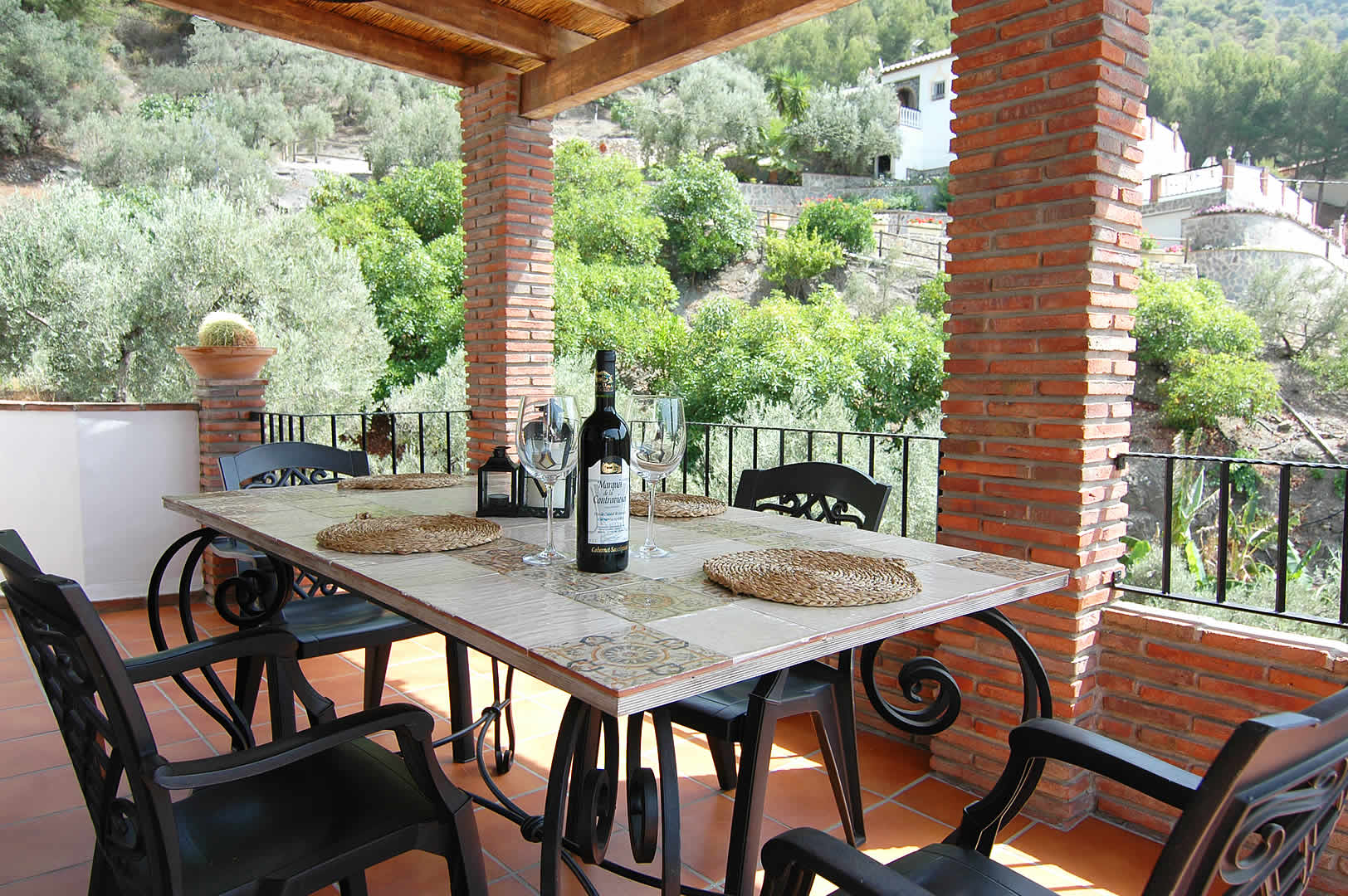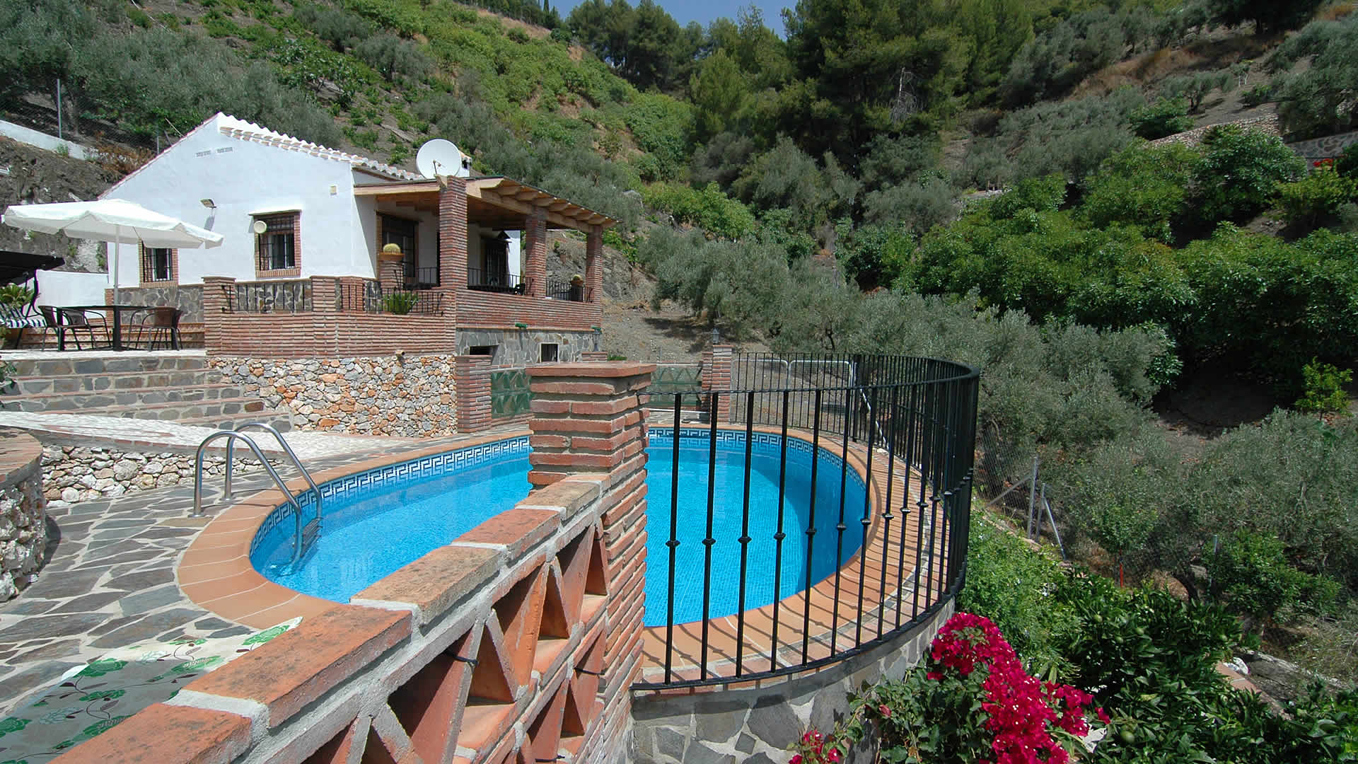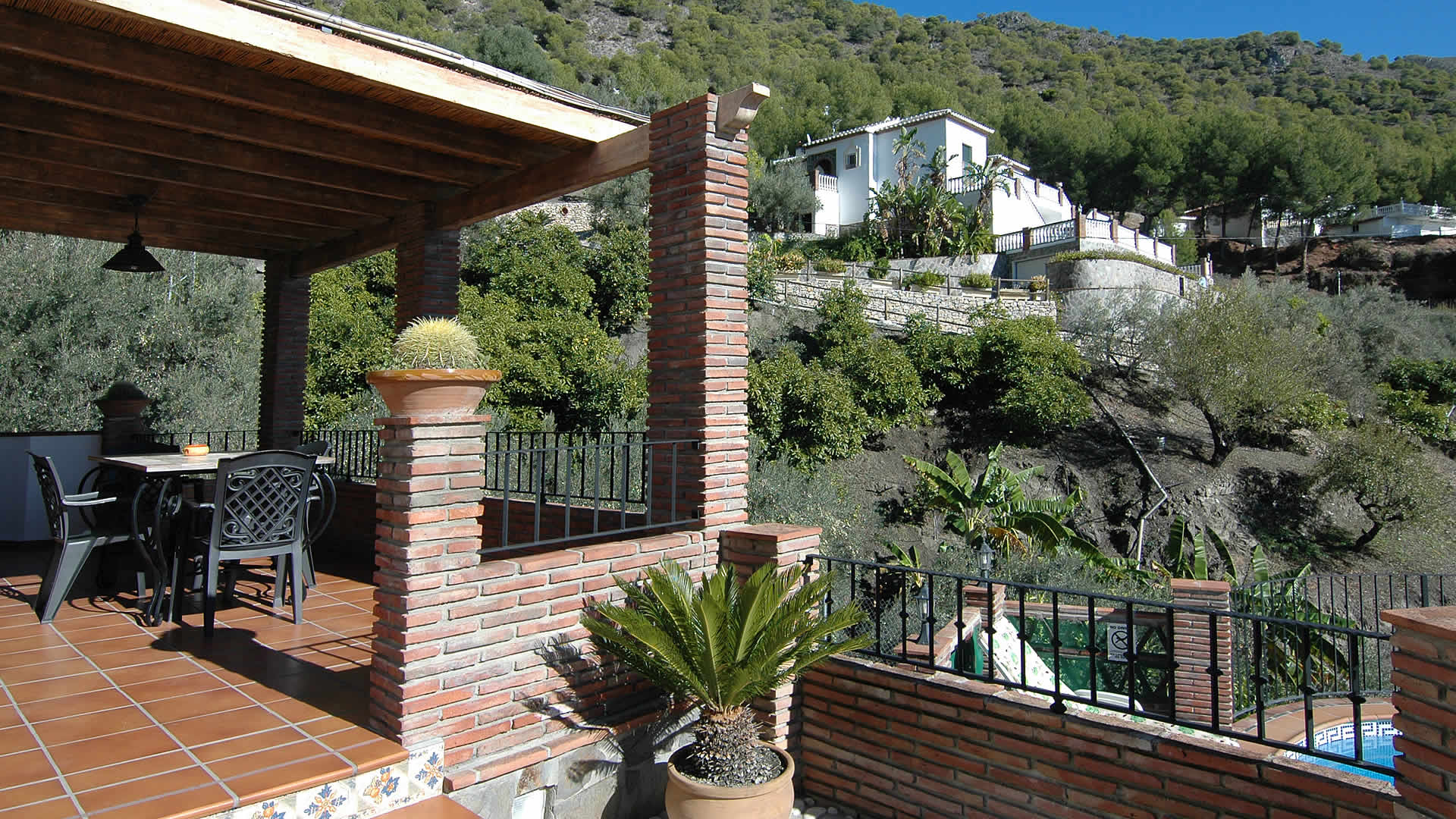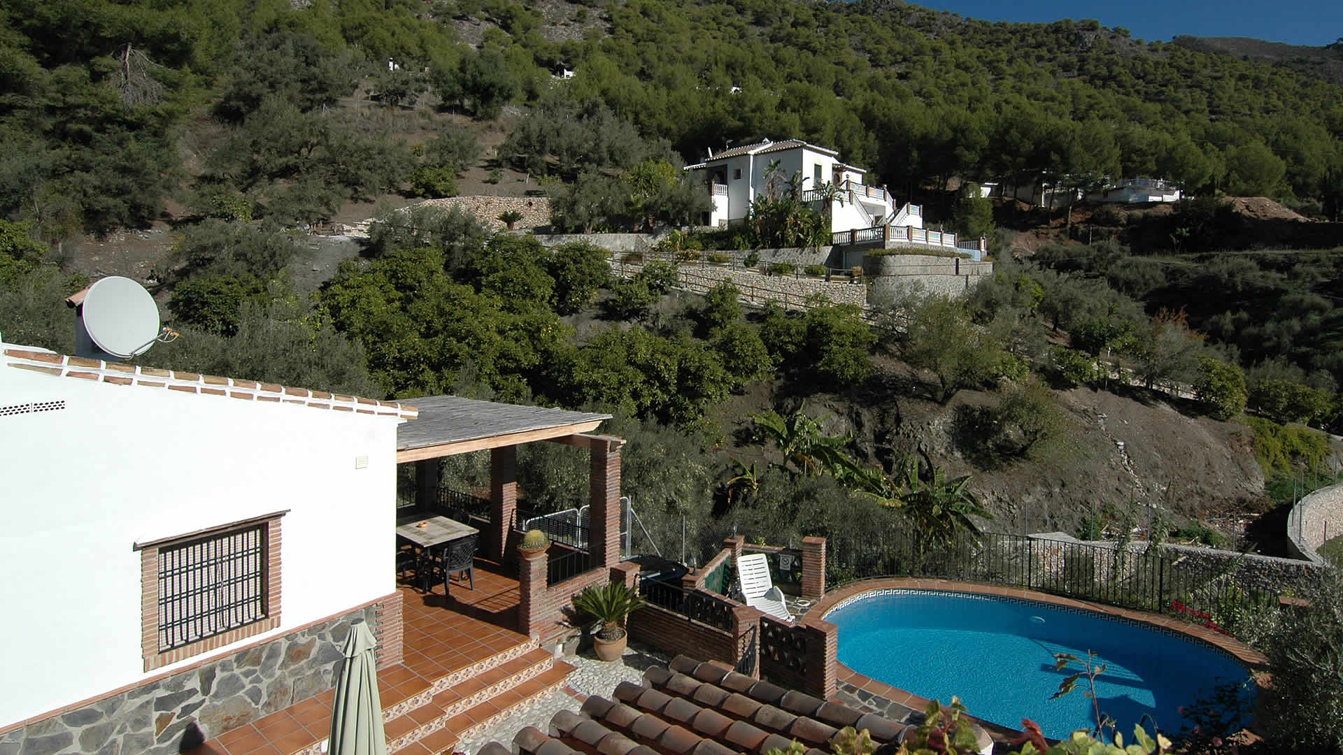 Rodeada de verdes colinas, además de tener unas impresionantes vistas sobre el mar, esta casa ofrece un entorno agradable para una estancia tranquila y relajante. El pueblo de Frigiliana (2,7 km), con muchos restaurantes, bares y tiendas de artesanÃa, es de fácil acceso. Sin embargo, la alegrÃa de vivir en un lugar tranquilo con su propia piscina y un buen restaurante (La Venta de Frigiliana) a pocos minutos a pie, no está sacrificada. Las fascinantes Cuevas de Nerja, justo al este de la ciudad, bien merecen una visita.Una gran terraza cubierta a lo largo de toda la longitud de la casa es el lugar perfecto para relajarse y admirar la piscina vallada más hacia abajo. Unos pocos escalones conducen al patio donde está la barbacoa (con un fregadero) para las cenas al aire libre. El mobiliario de jardÃn está provisto. Unos escalones más hacia abajo conducen a la piscina ovalada (6x3 m, de 1 a 1,75 m de profundidad), que ocupa un lugar central en la propiedad con una hermosa vista desde la terraza. Hay tumbonas para disfrutar del sol y sombrillas si usted prefiere estar en la sombra. El jardÃn adorna la vista con sus rosales, flores aromáticas y olivos.
