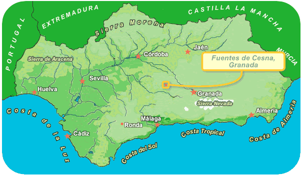 Deze 'cortijo' ligt in de buurt van Fuentes de Cesna in het geografische deel 'Las Ramiras', met prachtige, afwisselende landschappen: steile bergen, diepe ravijnen, beekjes en rivieren. Het landhuis maakt deel uit van een boerenhoeve die stamt uit de 17e eeuw. Er is een prive-zwembad aanwezig voor een frisse duik.