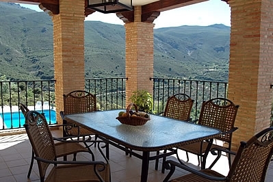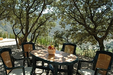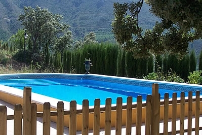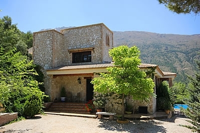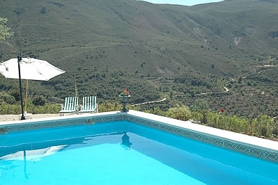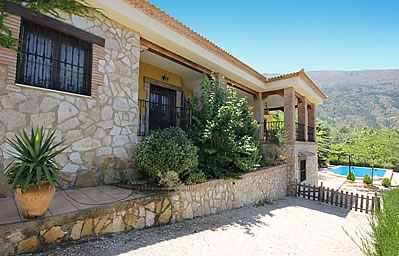 Estas 2 encantadoras villas (ver también ref Jaén 002 y Jaén 003) están situadas en plena comarca de Sierra Sur en un paisaje algo dramático de preciosas montañas verdes. Las villas son completamente independientes y construidas en 2 niveles. Cada villa tiene su piscina privada y amplias zonas de su uso exclusivo en el exterior. Tan sólo les une una escalera que puede ser cerradas desde ambos lados. La villa en el nivel inferior tiene una preciosa terraza junto al salón donde da gusta cenar con las impresionantes vistas sobre el paisaje. La atractiva piscina privada esta situada en un nivel inferior y dispone de vistas panorámicas, hamacas y sombrilla. La villa situada en el nivel superior tiene un rincón con muy agradable con muebles de jardÃn entre los árboles para las comidas en el exterior. Las vistas al paisaje desde la tentadora piscina son inmejorables e invitan a relajarse con un buen libro en una de sus hamacas. No muy lejos de las villas hay un restaurante-asador donde se puede ir andando. El acceso a las casas es asfaltado y cada villa dispone de una zona de aparcamiento.