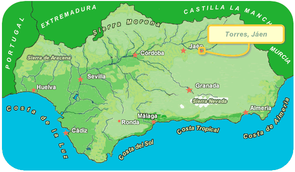 La propiedad está situada a 5 minutos en coche de Torres (5 km), un encantador pueblo en la provincia de Jáen, que linda con el parque natural de la Sierra Mágina, famoso por su excelente aceite de oliva y el alto pico (2.167 metros) que lleva su nombre. El capital de la provincia esta a media hora (31 kms) y vale la pena visitar, mientras Granada con su famoso Alhambra esta a 103 kms. Creemos que esta casa ofrece todo para pasar unas vacaciones ideales con la familia. Está rodeada por un huerto de cerezos y dispone de una espléndida piscina privada (8x5 mts), varias terrazas donde puede comer al aire libre (hay barbacoa), árboles frutales y flores y plantas de mucho color.