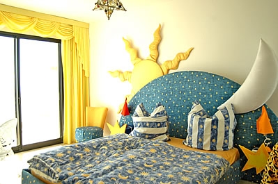 Esta villa tiene una situación excelente, en la urbanización Chimenea, con vistas frontales al Mediterráneo y a la playa Burriana. En el exterior encontrará un jardÃn maduro con césped y una gran piscina de 5 por 15 metros. El diseño del interior es algo extravagante, con mucho color. ¡Seguro que a los niños les encantará el guiño hacia los favoritos de Disney!