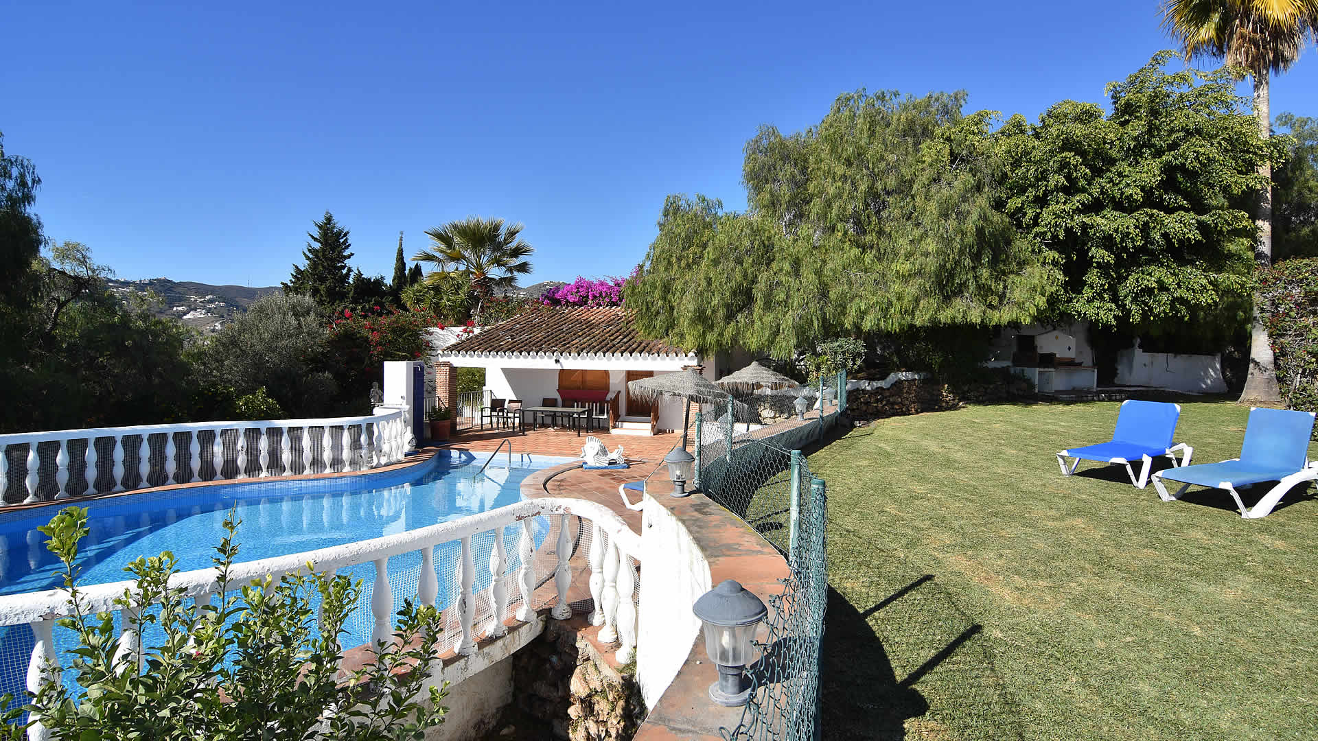 Esta villa lo ofrece todo: una situación excelente a tan solo 5 minutos en coche de Nerja, vistas al mar, jardÃn con césped donde los niños podrán jugar, un sombreado porche donde dormir la siesta o disfrutar comidas en el exterior y un espacioso interior. ¿Qué más podemos pedir para nuestras vacaciones?