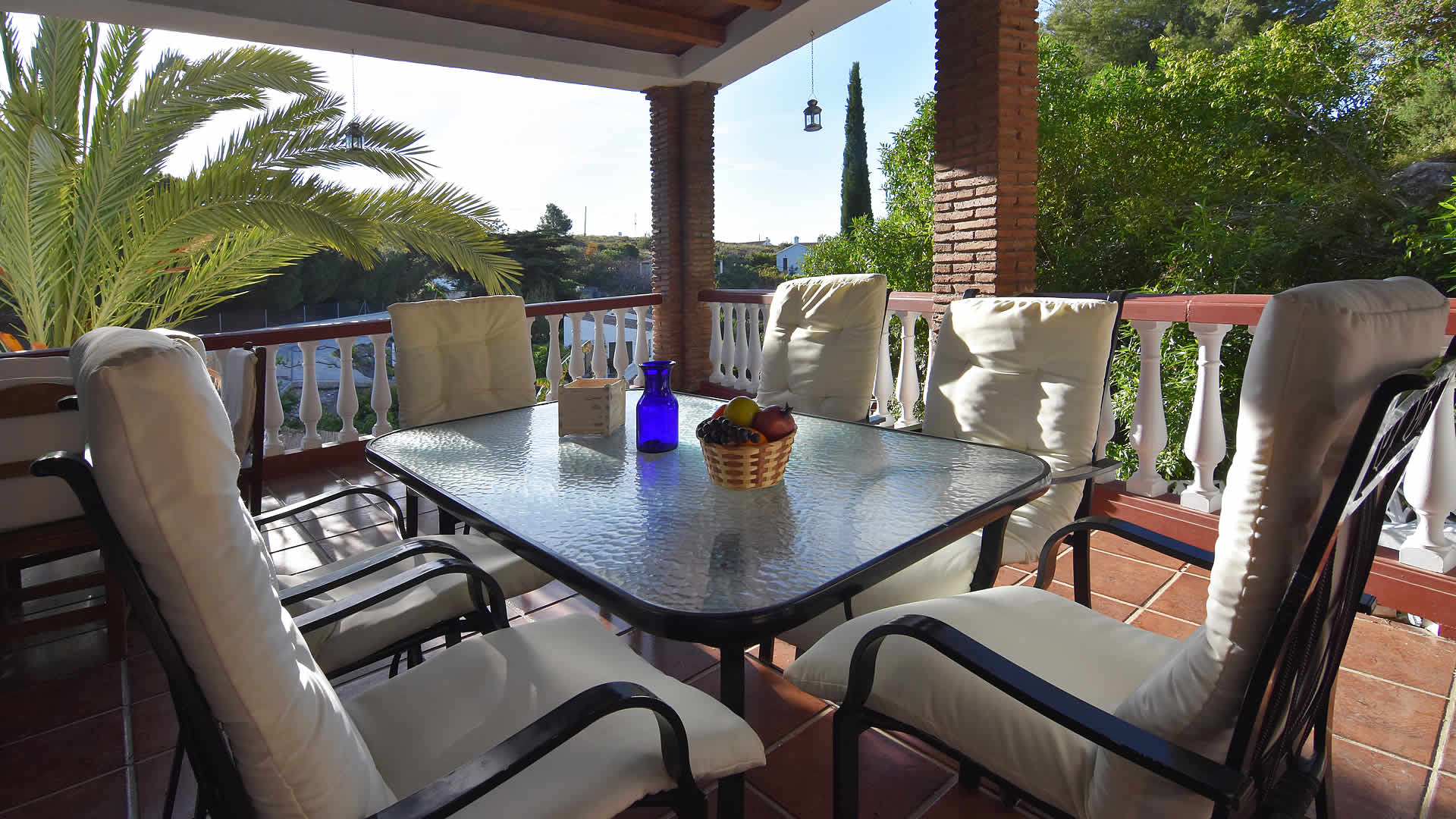La villa se localiza entre Nerja (3,5km) y Frigiliana - aunque no esta muy lejos de la carretera principal, aquà disfrutará de tranquilidad sin que nadie le molesta. En Nerja, donde se llega en 5 minutos en coches, encontrará todos los servicios y sus estupendas playas donde el pescaÃto frito forma parte del ambiente. El jardÃn de esta casa destaca por amplitud y su excelente zona de césped - hay hamacas, mobiliario de jardÃn y barbacoa para poder disfrutarlo al máximo. En la planta de arriba encontrará otra terraza para las comidas en el exterior o donde se puede echar una siesta en la sombra. Los que quieren descubrir los tesoros de esta zona tienen muchas posibilidades de seguir bonitas rutas de senderismo. También vale la pena visitar los pueblos blancos de la AxarquÃa, aunque se hace mejor en coche.