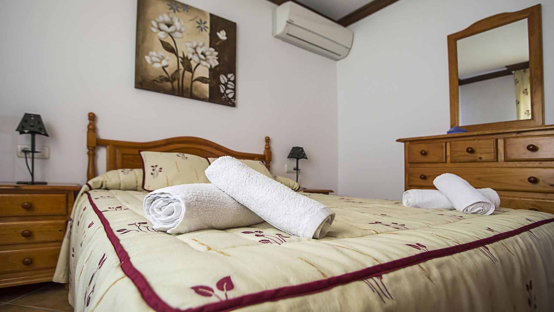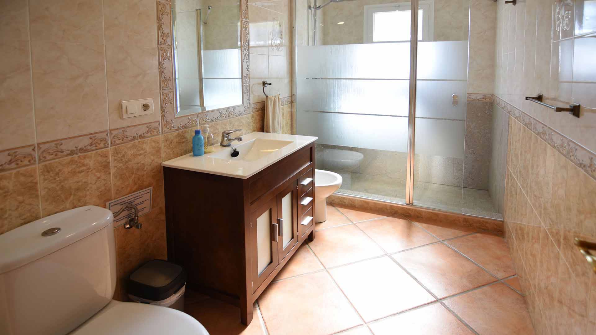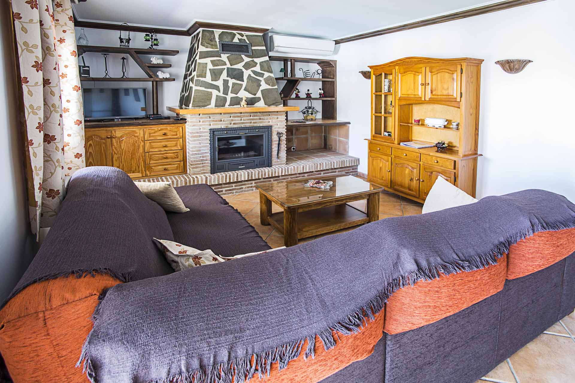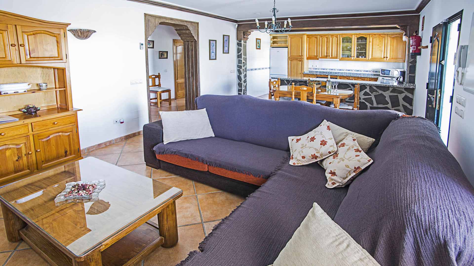 Dit is een heel comfortabele villa met uitstekend meubilair en alle kamers gelijkvloers. Vanaf het terras komt u via de voordeur in de comfortabel gemeubileerde lounge en eetkamer. Een grote stenen open haard karakteriseert de lounge en kan gebruikt worden voor de koelere maanden. Tevens is de lounge voorzien van satelliet tv en een radio/CD speler. Een ontbijtbar scheidt het eetkamergedeelte van de zeer goed uitgeruste keuken. Deze is voorzien van een keramische kookplaat, oven, koelkast/vriezer, magnetron, vaatwasser en een wasmachine. Er zijn drie slaapkamers, één tweepersoonskamer en twee kamers met aparte bedden, en twee luxe badkamers. Er is air conditioning (koud & warm) aanwezig in de slaapkamers en woonkamer. Een WiFi internet verbinding en kluisje zijn aanwezig (beiden gratis).