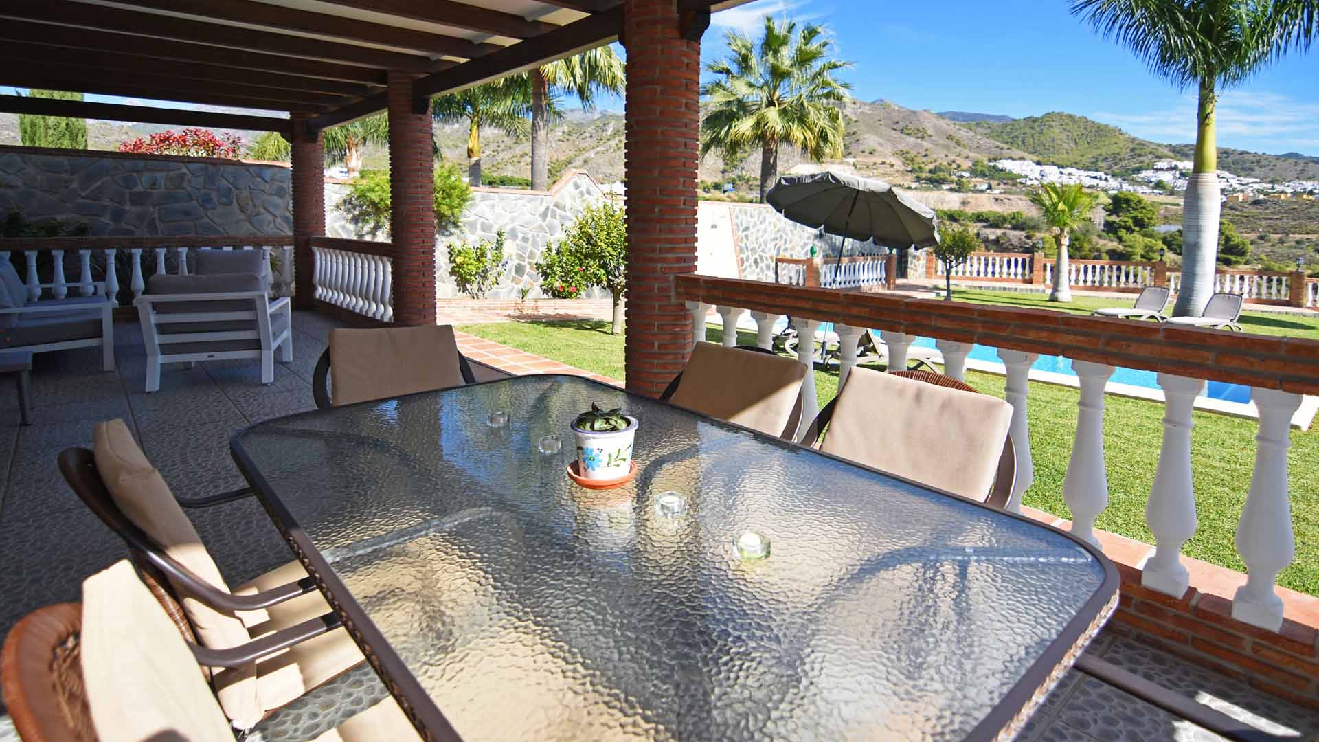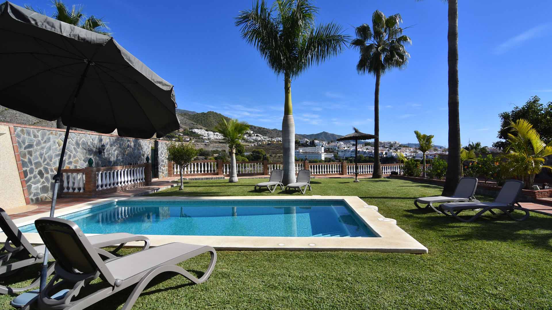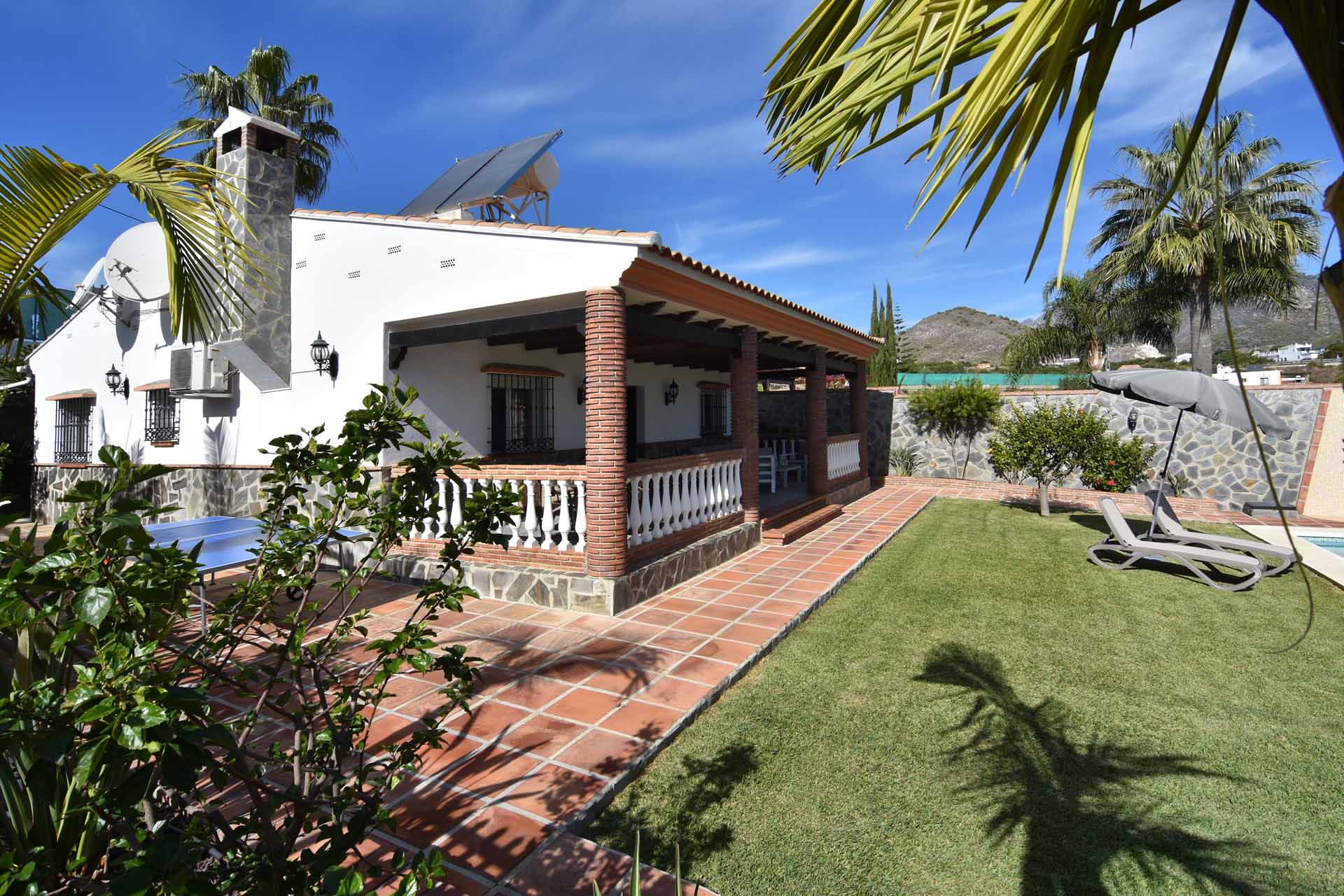 De villa is bereikbaar via een eigen weg vanaf de elektronisch bediende toegangspoort. U kunt buiten eten op het mooie, schaduwrijke terras dat aan het huis grenst, een barbecue staat voor u klaar! Zonaanbidders zullen gecharmeerd zijn van het gazon dat het verleidelijke privé zwembad van 8 x 4 meter omringt, compleet met ligstoelen. Vanaf hier hebt u een schitterend uitzicht, óver de toppen van de avocadobomen, over het landschap en de heuvels die Nerja omringen. De villa ligt slechts 5 minuten rijden van Nerja (3 kilometer) en het Burriana strand is nog dichterbij (2,2, kilometer). Historisch Granada, met zijn spectaculaire Alhambra paleis, het Middeleeuwse AlbaicÃn district, winkels, zijn mooie pleinen en paleizen is een bezoek meer dan waard, iets meer dan een uur rijden. De omgeving van het huis is een paradijs voor wandelaars; in de plaatselijke boekwinkels kunt u het boekje "Twelve walks around Nerja", geschreven door Elma en Denis Thompson, kopen. Enkele andere excursies die u kunt maken zijn de schilderachtige "witte" dorpen van de Axarquia en de historische Nerja grotten.