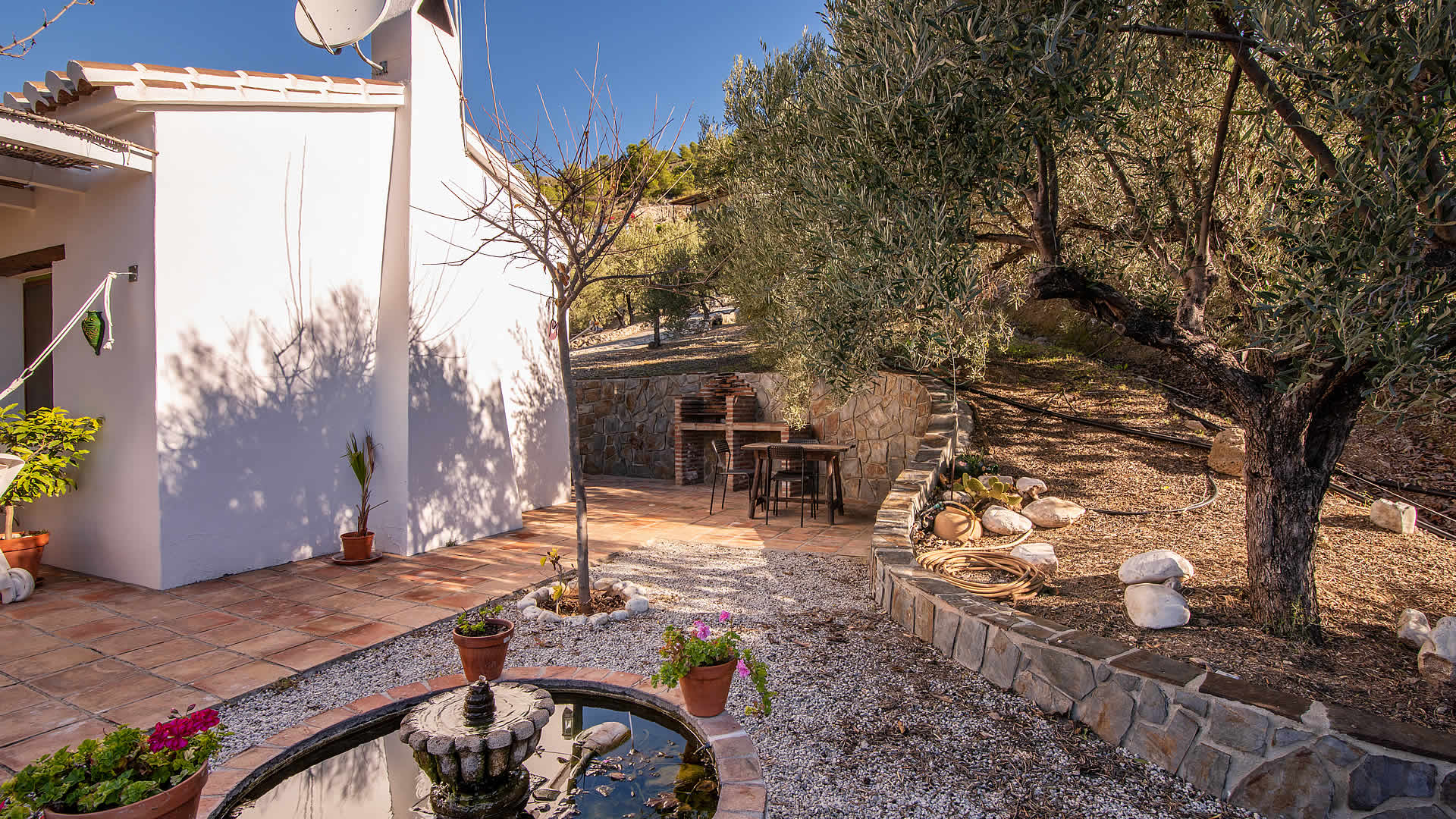 La casa se localiza al norte de Nerja, dentro del Parque Natural de Sierra Tejeda, en plena naturaleza. Está presente la flora y fauna tÃpicamente mediterránea y con un poco de suerte hasta podrá ver ciervos, jabalÃes y otros animales salvajes del Parque! Los últimos 50 metros a la casa se hacen por una empinada pista de cemento. Una vez en la casa nos encontramos con un sombreado porche, un lugar ideal para echar una siesta, con espectaculares vistas a la campiña circundante y que alcanzan hasta la costa. El porche continúa con una soleada terraza equipada con tumbonas y piscina privada (5 x 3m). Se incluye una barbacoa para sus comidas al aire libre.