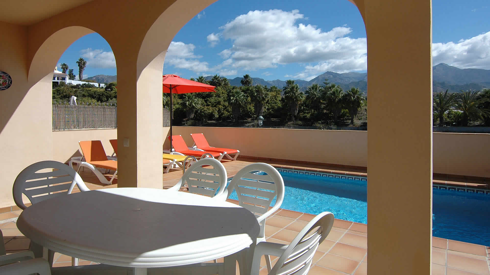 Punta Lara es una urbanización situada 2,5 kms al oeste del centro de Nerja. En la playa "El Playazo" (350m) encontrará varios chiringuitos donde sirven pescaÃto frito, tÃpico de la provincia Málaga. La localización también es muy conveniente para visitar los pueblos blancos de la Axarquia o las cuevas de Nerja. El museo Picasso y e Palacio de la Alhambra de Granada están a menos de una hora en coche de aquà e invitan a ser descubiertos. Delante de la casa hay una piscina privada (5 x 4 m; 1 m a 1,5 m de profundidad) con hamacas - se accede desde el salón. En la parte trasera hay una bonita zona para comer en el exterior, con barbacoa, macetas con plantas y mobiliario de jardÃn.