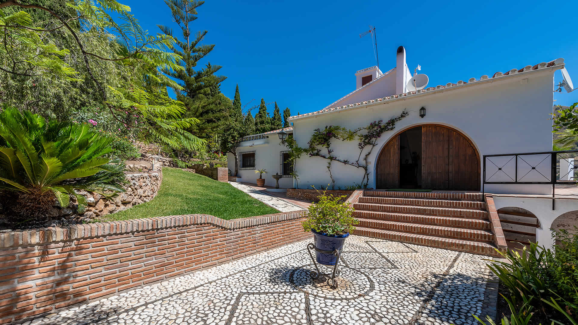 En 1963, un caballero alemán y una dama francesa cayeron perdidamente enamorados. Con el fin de compartir sus destinos, ambos tendrÃan que renunciar en vida a un sin fin de cosas importantes. Tanto el Sr. Neukirch como la Sra. Driou estaban entusiasmados con la zona de Nerja y Frigiliana y decidieron construir una casa de ensueño con vistas al mar y a la montaña. En su búsqueda por la mejor localización, subieron por la carretera de montaña en dirección a Frigiliana, por aquel entonces sin asfaltar y por la que mayormente circulaban mulas y caballos. Revisaron los terrenos palmo a palmo y fue entonces cuando divisaron el algarrobo. Tomaron la decisión en el acto. Cuando se construyó la casa en 1965, se convirtió en la primera en hallarse en la zona más oriental de la carretera. La casa fue vendida a sus actuales propietarios, Javier y Rosario, en febrero de 1992. Javier y Rosario la renovaron y remodelaron sin modificar su estilo tan personal.En 1993 decidieron darle otro aire al gran jardÃn y hacerlo más accesible, de manera que su espléndido carácter pudiese ser enteramente disfrutado por los futuros huéspedes. Se añadieron algunos escalones para poder acceder a los diferentes niveles con los que cuenta el jardÃn y donde también hay una extensa pradera de césped con abundancia de plantas y flores autóctonas de la zona de la AxarquÃa de Málaga y provincia. En la parte trasera de la casa, una pérgola con barbacoa se convierte en la zona nocturna favorita de los huéspedes. En la espaciosa área de piscina encontramos una gran piscina (9 x 4m y 1.4 -1.8m de profundidad) totalmente privada y que disfruta de una maravillosa panorámica del mar hacia el sur y de las impresionantes vistas de Frigiliana y el Parque Natural de la Almijara hacia el norte. También se ha introducido en el jardÃn un pequeño estanque elevado con carpas y plantas acuáticas que está en perfecta armonÃa con la paz y quietud de tan excepcional enclave.