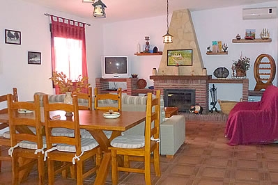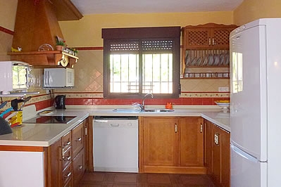 La villa tiene un interior muy cuidado y cómodo. Hay un salón comedor con aire acondicionado, tv por satélite y chimenea. La cocina es de tipo americana y dispone de vitro cerámica, microondas, lavavajillas, frigorÃfico y lavadora. Cuenta con 3 dormitorios (1 con cama de matrimonio y baño ensuite, otro con 2 camas individuales y el último con 1 cama individual) y 1 baño completo. Ambos baños tiene ducha, lavabo y wc. Sábanas y toallas incluidas (toallas playa no incluidas). Dispone de acceso a Internet Wifi.