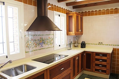 La villa entera fue construida con materiales de alta calidad: techos de madera y suelos de mármol. PLANTA BAJA SUPERIOR La planta baja superior consta de un amplio salón / comedor con grandes ventanales panorámicos que se abren a la terraza. Hay dos sofás, una mesa de comedor para 6 personas, TV vÃa satélite y reproductor de DVD. La cocina está equipada con vitrocerámica de 4 fuegos, nevera / congelador con dos puertas, microondas, horno y lavavajillas. También hay un cuarto de ducha con WC en esta planta. PLANTA BAJA INFERIOR Una escalera conduce del salón al piso inferior que consta de 2 dormitorios con cama de matrimonio y 1 dormitorio con dos camas individuales. Dos de estos dormitorios disponen de baño completo en suite y el tercero tiene un cuarto de ducha con WC. Todos los dormitorios tienen acceso directo a la terraza. PLANTA SÃTANO El sótano es el espacio perfecto para el entretenimiento, equipado con mesa de billar, futbolÃn y televisión. PLANTA DEL JARDIN La planta del jardÃn dispone de un aseo para los invitados y de un cuarto con lavadora y secadora.
