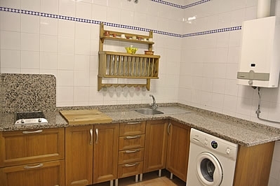 El interior de la casa es sencillo y realizado en estilo clásico. El salón, cocina y baño común se encuentran en la planta baja, los dormitorios y segundo baño en la primera planta. El salón dispone de chimenea, sofá para 3 personas y 2 butacas, mesa comedor para 6 personas y televisión. La cocina está equipada con placa vitrocerámica de 2 fuegos, frigorÃfico, microondas y lavadora. El baño principal de la vivienda está equipado con wc, lavabo y bañera con ducha. El dormitorio principal tiene cama de matrimonio, los otros dormitorios 2 camas individuales y 1 sofá-cama cada uno. El baño de esta planta es completo con media bañera ducha. Dispone de aire acondicionado en los 3 dormitorios de la planta alta, y de un ventilador en el salón. Nota: Dispone de conexión a Internet WiFi (gratuito).