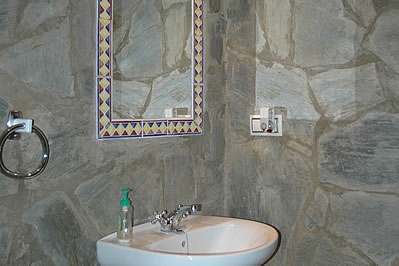 El interior de la casa es cómodo y realizado en estilo rústico. Todas las estancias se encuentran en la planta baja. El salón dispone de chimenea, 2 sófas, 2 sillones de madera, mesa comedor para 6 personas y televisión. La cocina esta equipada con vitrocerámica de 4 fuegos, frigorÃfico, microondas y lavadora. El baño principal de la vivienda esta equipado con wc, lavabo y media bañera con ducha. Los dormitorios tienen camas individuales que pueden juntarse (bajo petición). Hay otro baño con wc, lavabo y placa de ducha. Dispone de aire acondicionado en los 3 dormitorios. Nota: Dispone de conexión a Internet WiFi (gratuito).