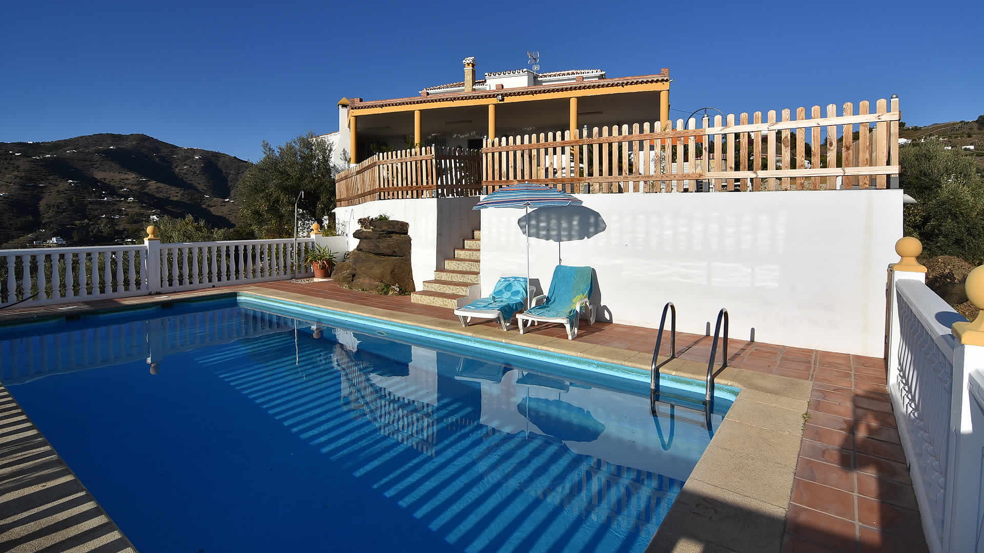Het hooggelegen huis heeft verbluffend mooie uitzichten over het omringende terrassenlandschap tot aan de Middellandse Zee. Het lieflijke dorp Torrox ligt op 10 minuten rijden afstand van hier. De villa ligt 20 minuten rijden van de kust en is zeer gunstig gelegen om een bezoek te brengen aan de grotten van Nerja en aan de steden Granada en Málaga. De grote veranda is voorzien van twee eettafels voor in totaal tien personen en van een trap die leidt naar het heerlijke privé zwembad (9 x 5 meter) met douche. Aan de achterkant van de villa vindt u een parkeerplaats met voldoende ruimte voor 5 auto's.