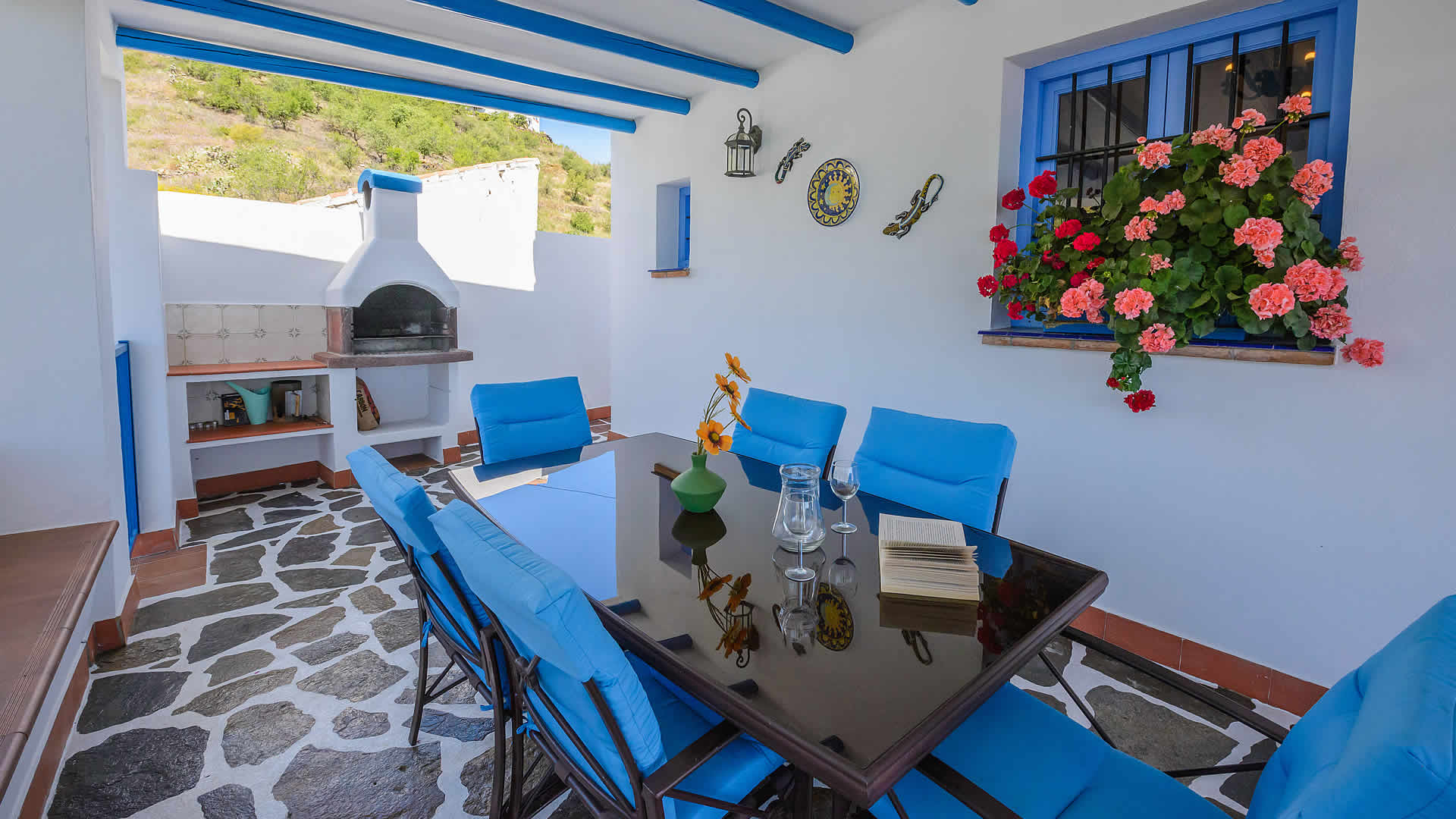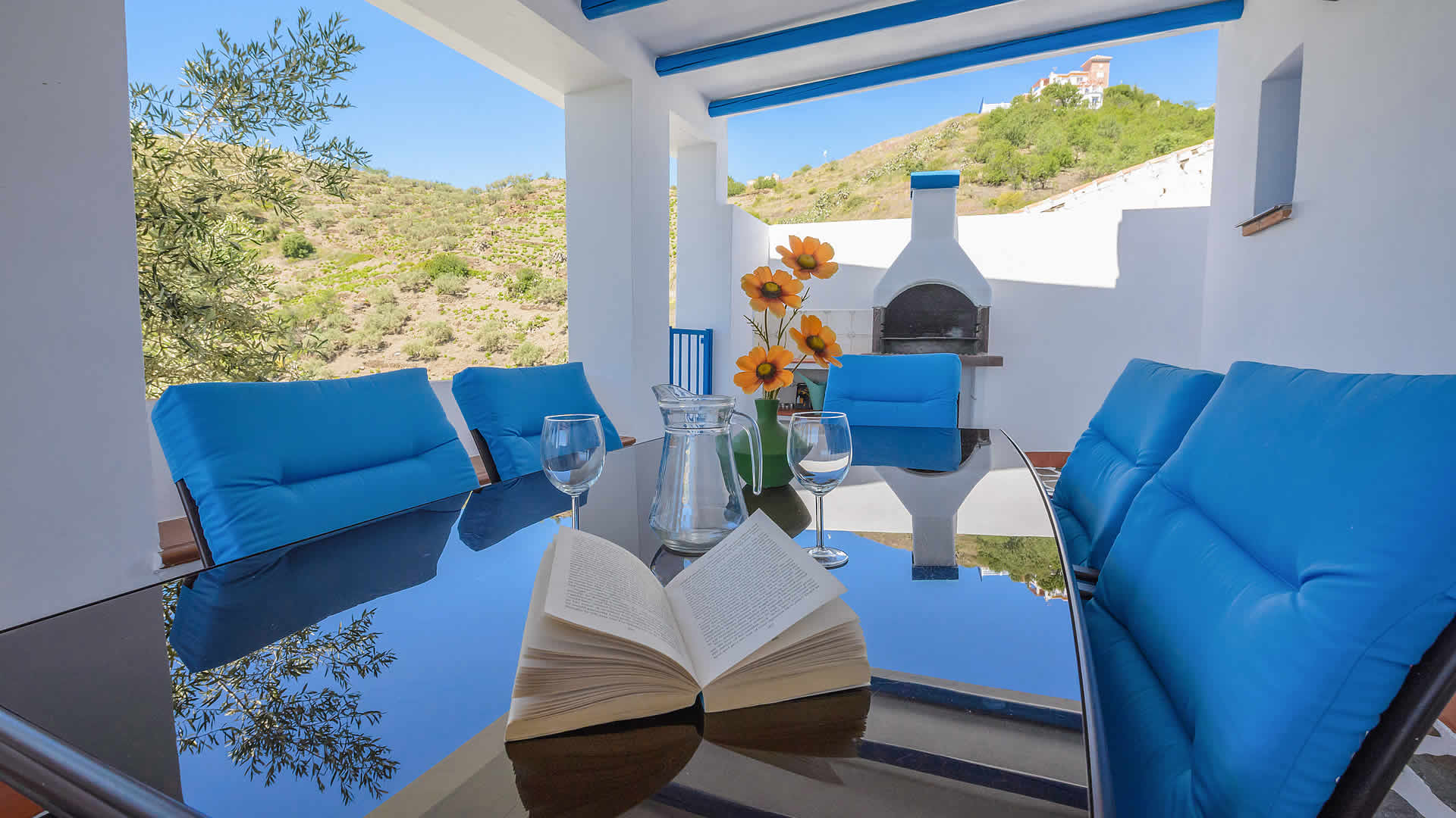 Cómoda casa de campo con impresionante vistas sobre las montañas con olivos, aguacates y el mar al fondo. Pertenece al municipio de Torrox, cuyo centro se encuentra a 7 kilómetros. Los últimos kilómetros hasta la casa es un carril de campo en buen estado. En el exterior, la casa dispone de un porche muy agradable con mesa comedor y barbacoa. La piscina esta situada en un nivel inferior.