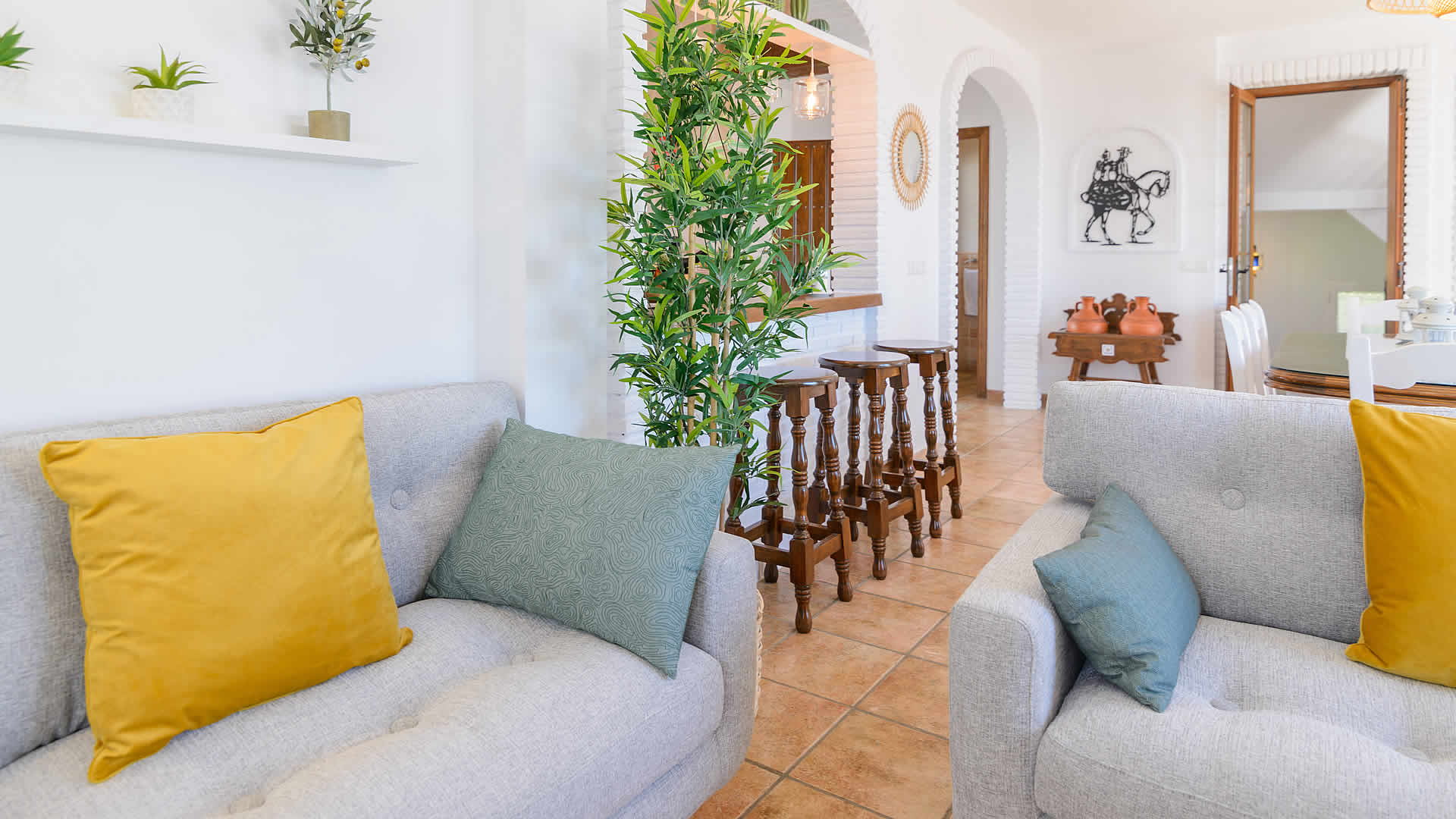 El interior es muy luminoso, cómodo y decorado con buen gusto. La villa cuenta con un salón con chimenea y televisión por satélite. La amplia cocina cuenta con vitro cerámica, horno eléctrico, microondas, nevera, congelador, lavavajillas y lavadora. Desde el salón, hay una escalera que da acceso a tres dormitorios: uno con cama de matrimonio y otros dos con dos camas individuales cada uno. En esta planta hay también un baño completo. El cuarto dormitorio se encuentra en la primera planta es de tipo suite, con baño dentro y terraza privada. Internet WiFi disponible (gratuito).Nota: Dispone de aire acondicionado en los dormitorios; es opcional, el coste varÃa en función del uso (a pagar allà a la salida).